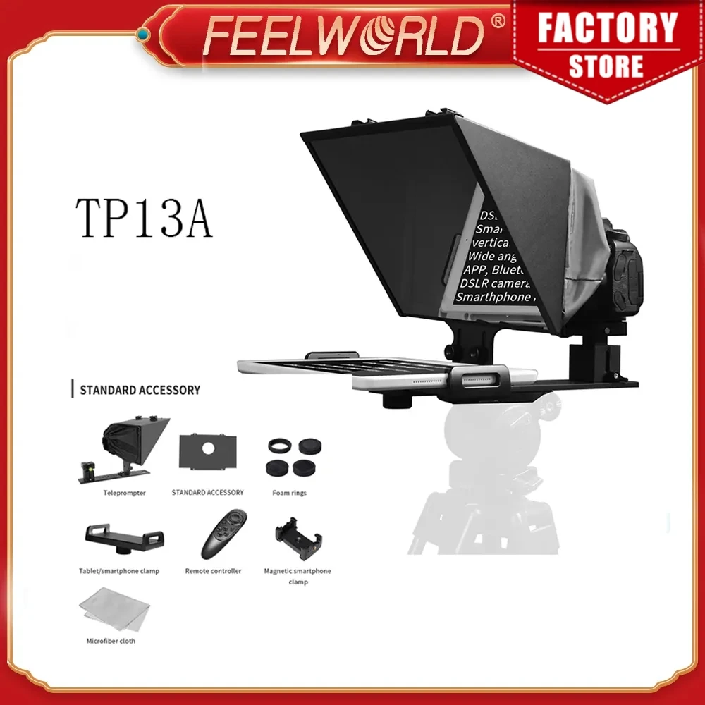 Comprar Feelworld-Teleprompter portátil TP13A, 13 pulgadas, para portátil, cámara DSLR, tableta ajustable, Smartphone, ipad