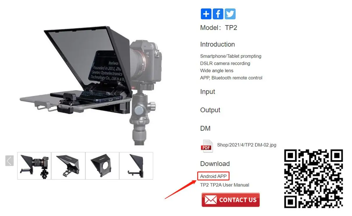 La aplicación para teléfono inteligente Android (nombre: FEELWORLD) se puede descargar en la sección "Descargar" de la página de detalles TP2 o escanear el código QR para descargar.