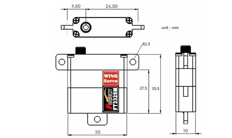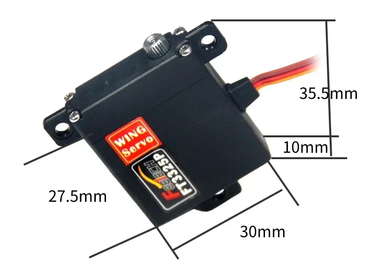Delgada (el grosor del cuerpo es de sólo 10 mm).Servoaccionamiento digital Feetech FT3325P para modelos de aviones con perfil de ala delgada, para el cual los servomodelistas estándar son demasiado gruesos.La servocomáquina Feetech FT3325P está equipada con engranajes metálicos y rodamientos dobles.