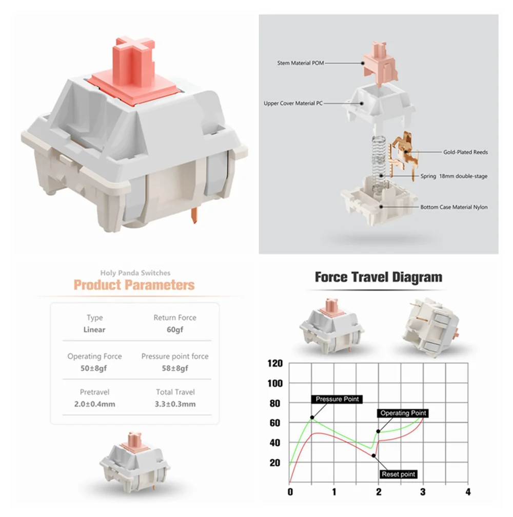 -Hecho con tallos de Halo borra o Halo Trues, con la carcasa que se encuentra en los interruptores Invyr Panda, los interruptores Holy Panda combinan lo mejor de dos mundo.