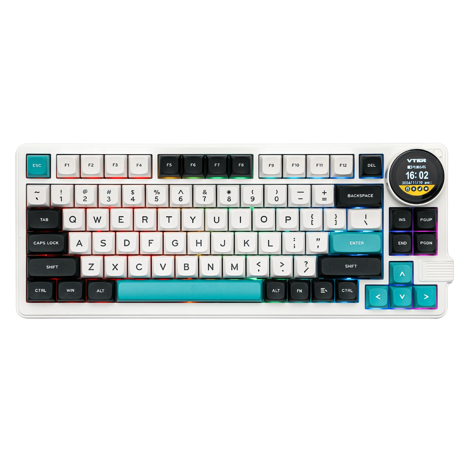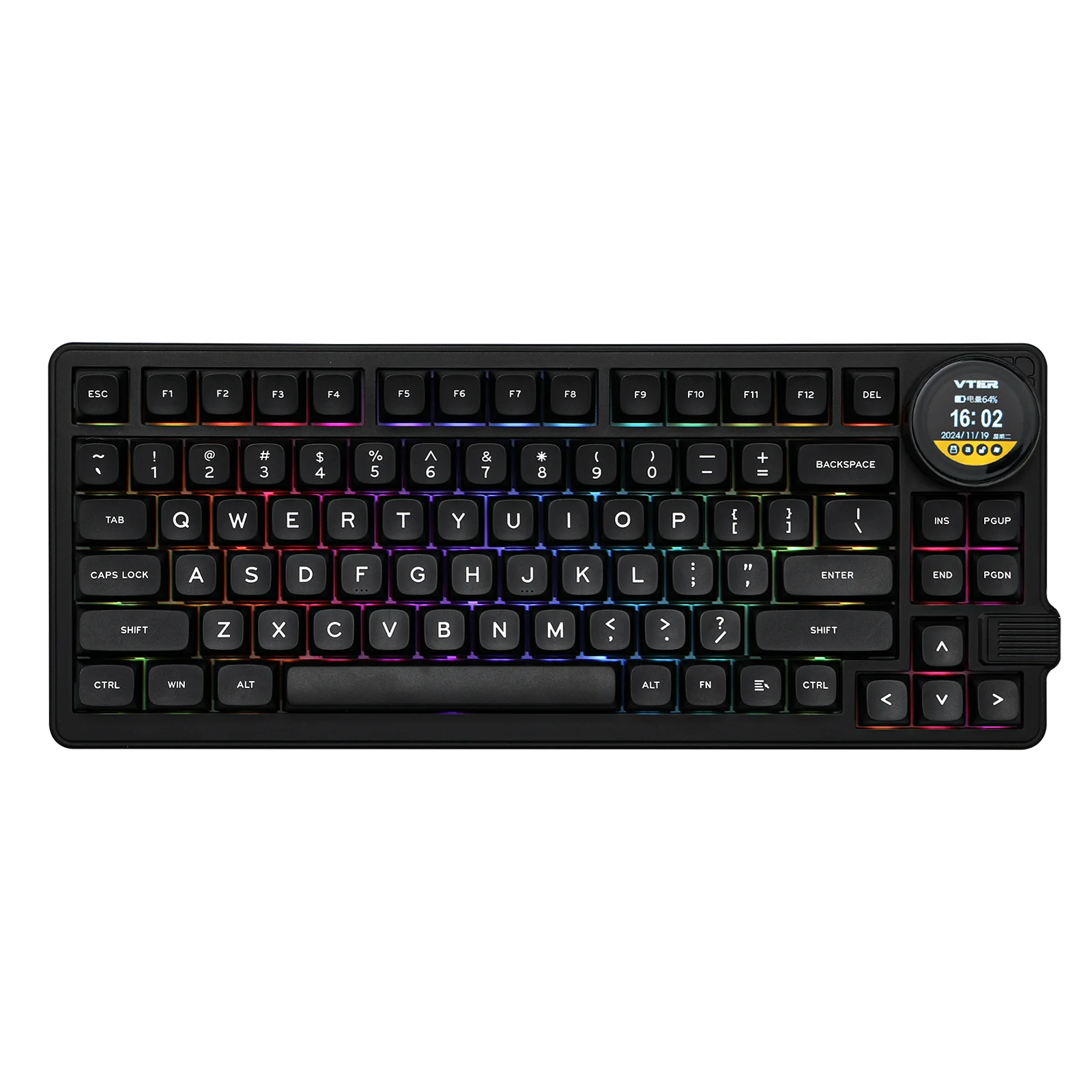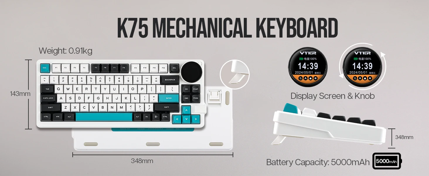 Feker K75 Lite Teclado mecánico con junta inalámbrica de intercambio en caliente USB-C/BT5.0/2.4G con pantalla y perilla retroiluminación RGB para Win/Mac