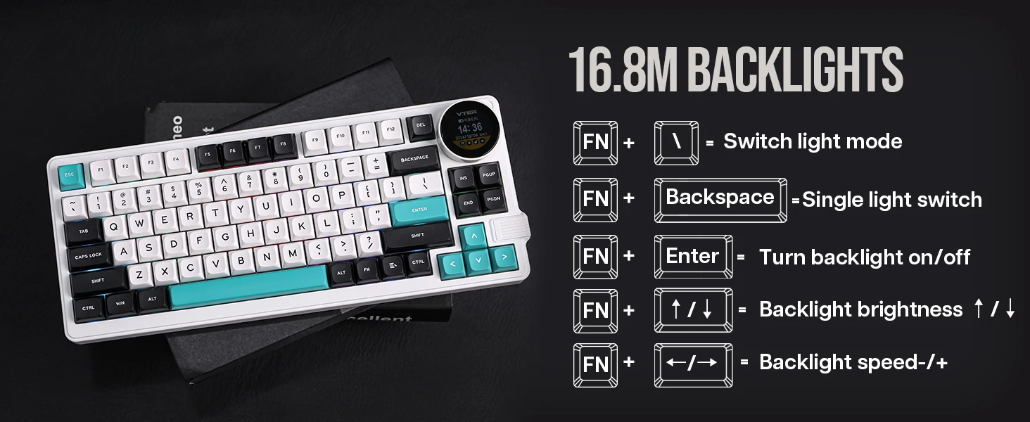 Con un diseño de interruptor intercambiable en caliente, Feker K75 Lite puede cambiar fácilmente los interruptores según sus preferencias personales, ofreciendo una experiencia de entrada altamente personalizable.Con anti-ghosting de teclas completas, cada pulsación de tecla se registra con precisión, lo que evita pulsaciones accidentales y entradas repetidas.Las teclas PBT de doble disparo de alta calidad brindan una sensación cómoda y una durabilidad duradera.