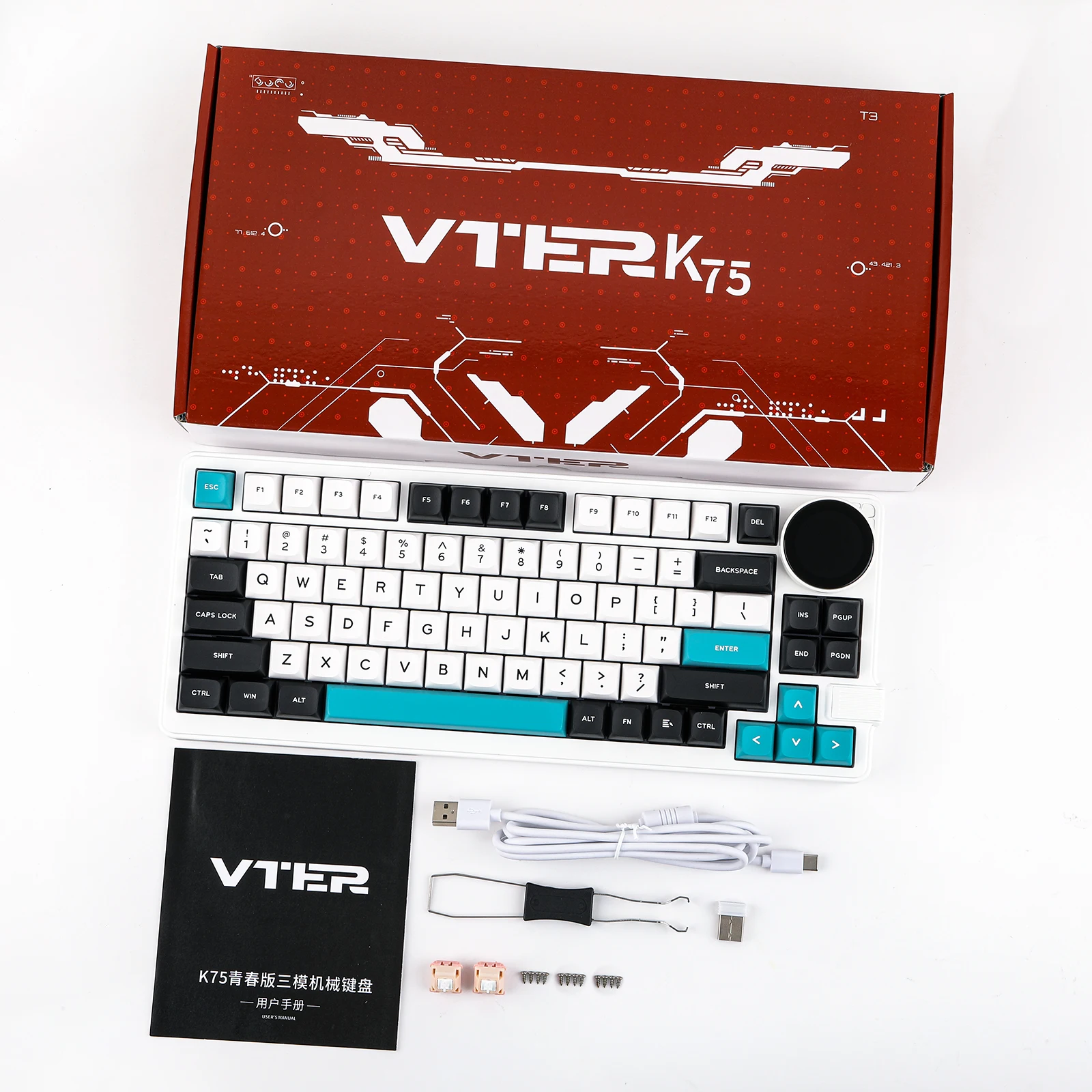 Comprar Feker K75 Lite USB-C/BT5.0/2,4G con cable, teclado mecánico inalámbrico con junta de intercambio en caliente y retroiluminación RGB de pantalla para Win/Mac