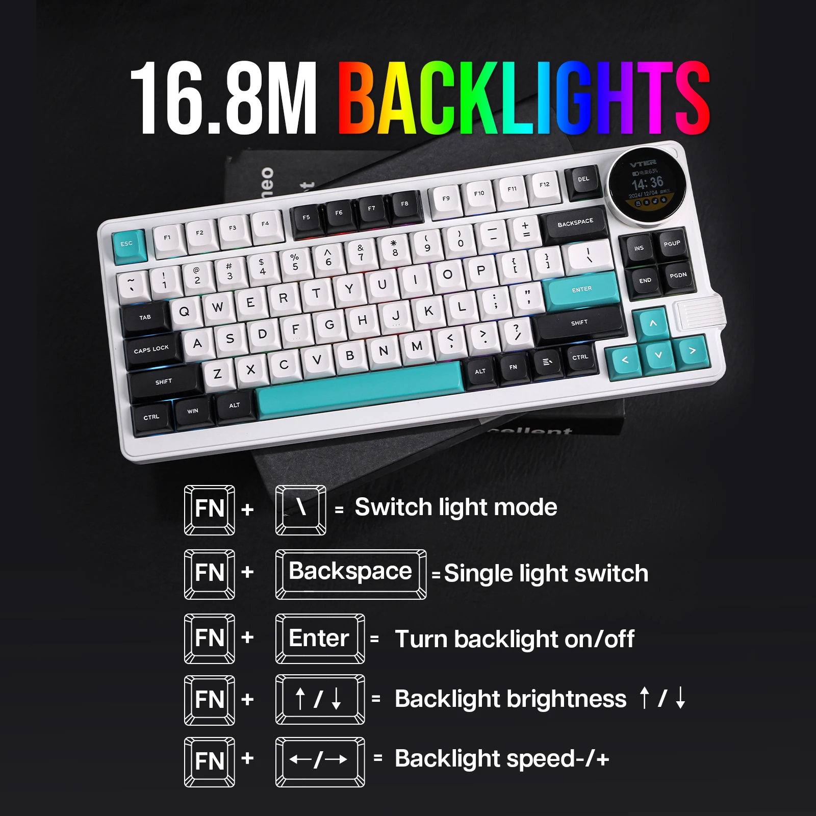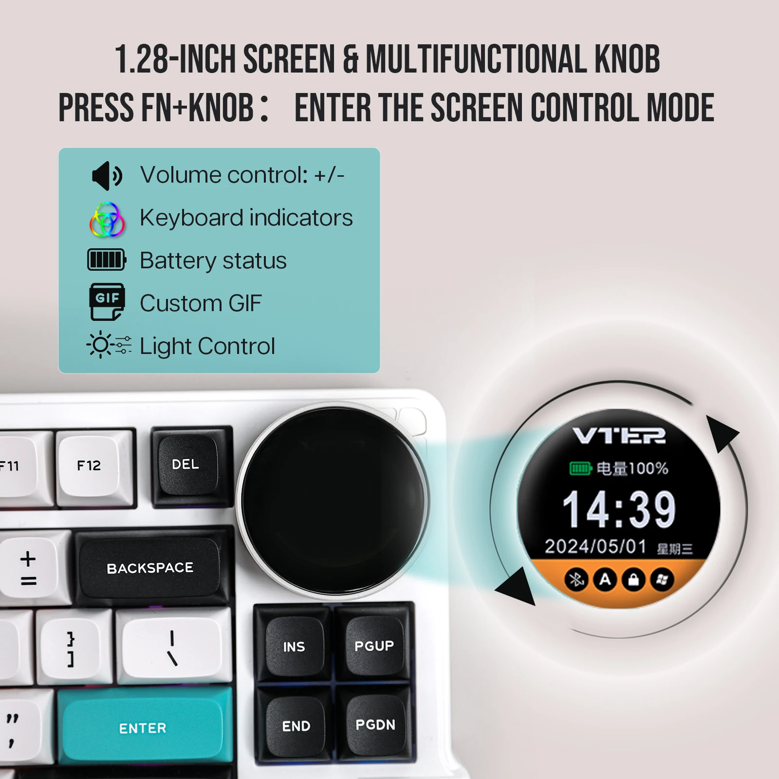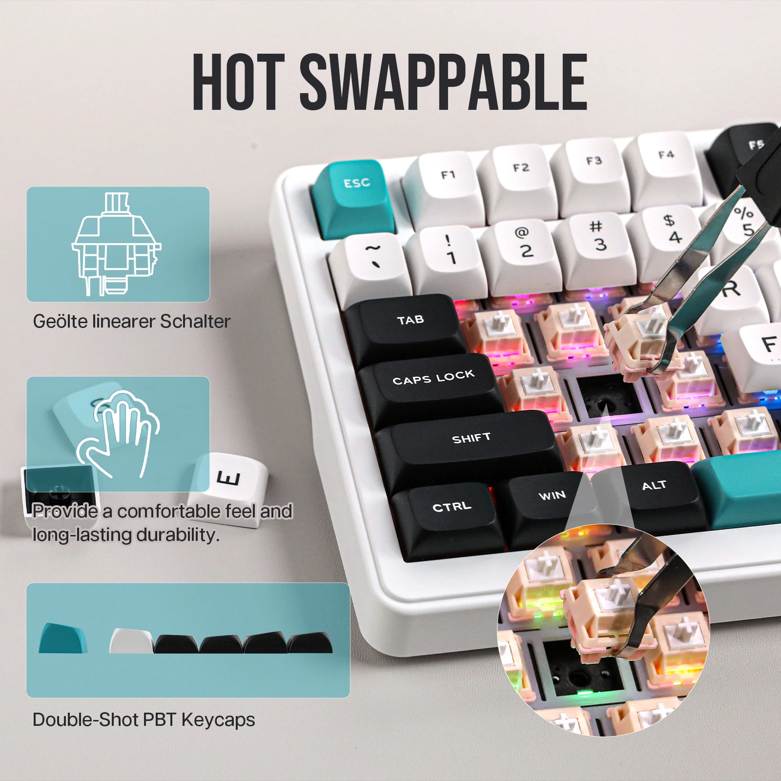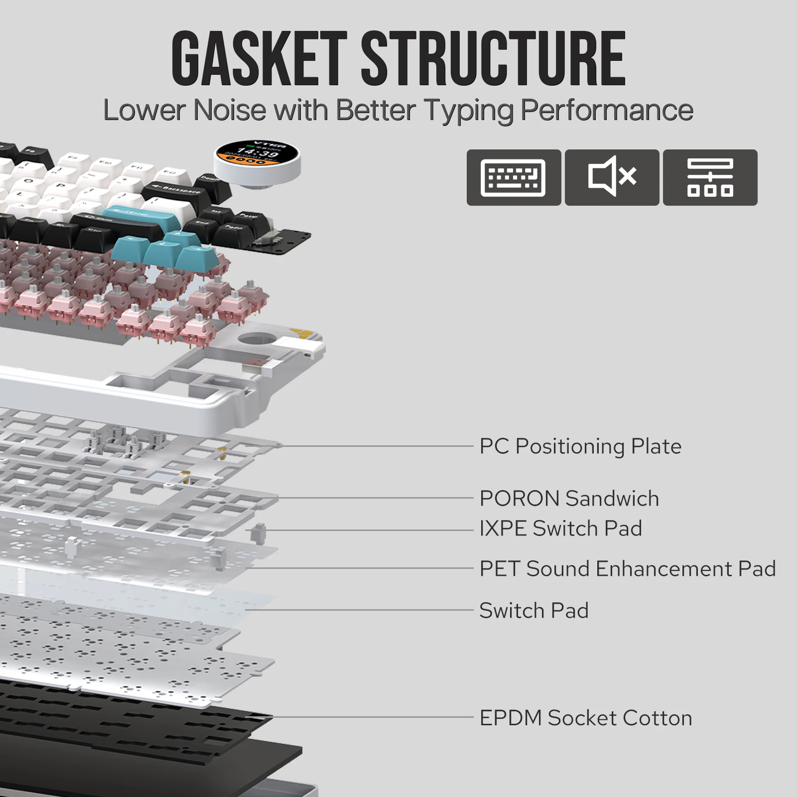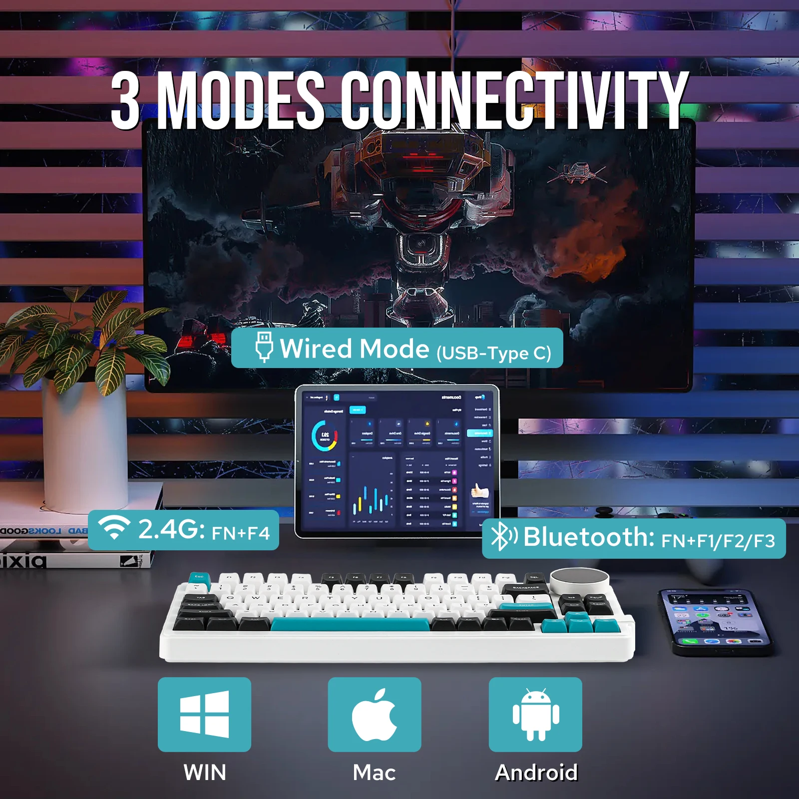Feker K75 Lite Teclado mecánico con junta inalámbrica de intercambio en caliente USB-C/BT5.0/2.4G con pantalla y perilla retroiluminación RGB para Win/Mac