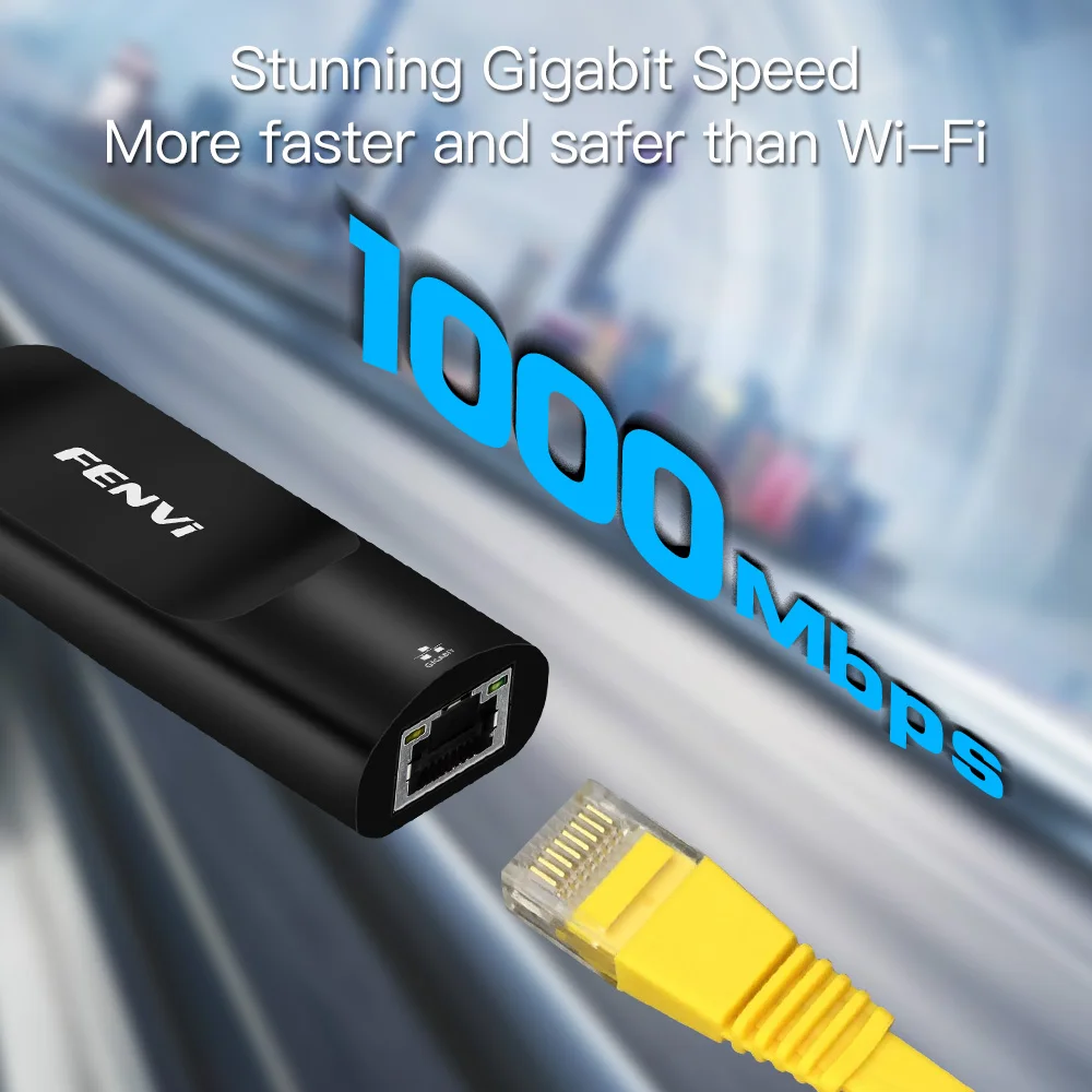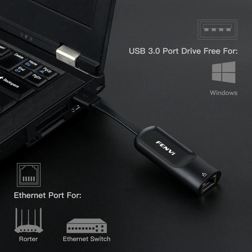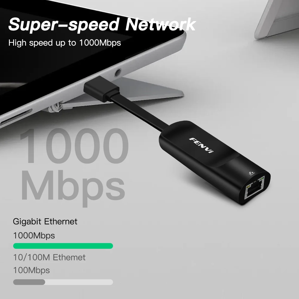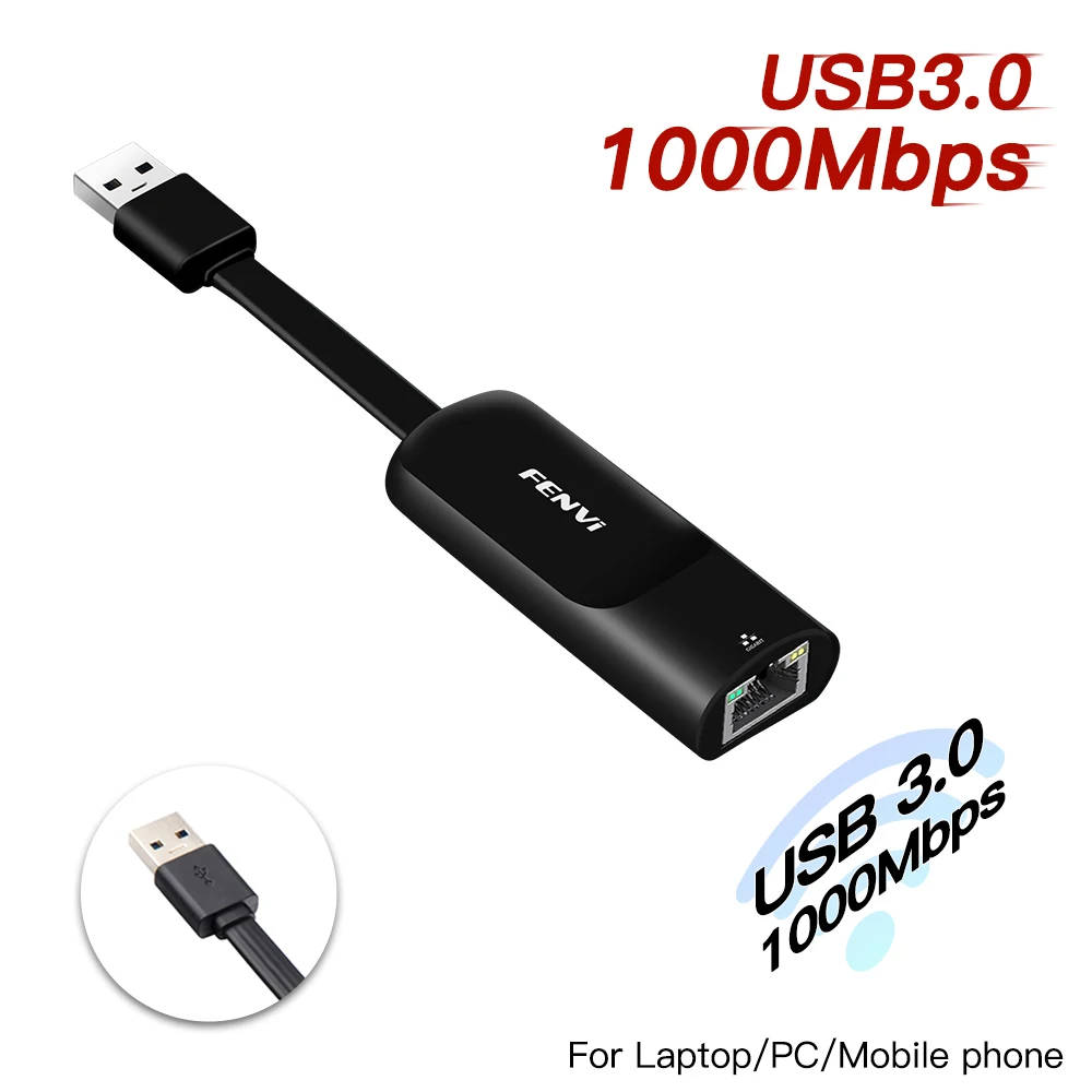 Comprar Fenvi 10/100/1000Mbps con cable USB 3,0 USB a Rj45 Lan Ethernet adaptador RTL8153 tarjeta de red para PC Macbook Windows portátil Linux