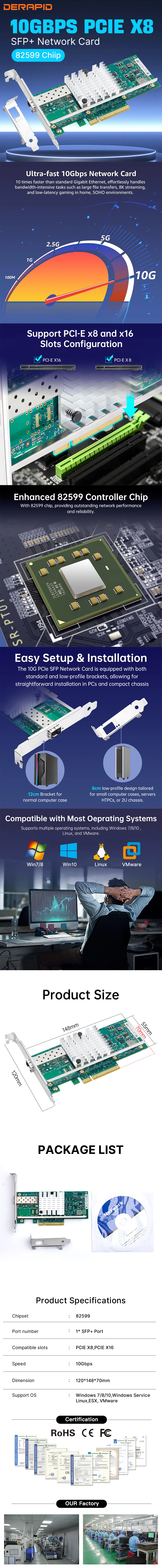 3) Controlador Ethernet: basado en el controlador Intel 82599ES original, que admite la virtualización de E/S de un solo raíz y mejora la estabilidad de los servidores.Compare con Intel X520-DA2 (Intel E10G42BTDA).
