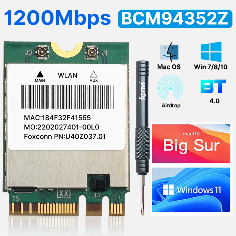 Comprar Fenvi 1200Mbps BCM94352Z tarjeta de red WiFi Bluetooth 4,0 banda Dual 5G/2,4 Ghz BCM94352 DW1560 NGFF M.2 adaptador para Hackintosh mac