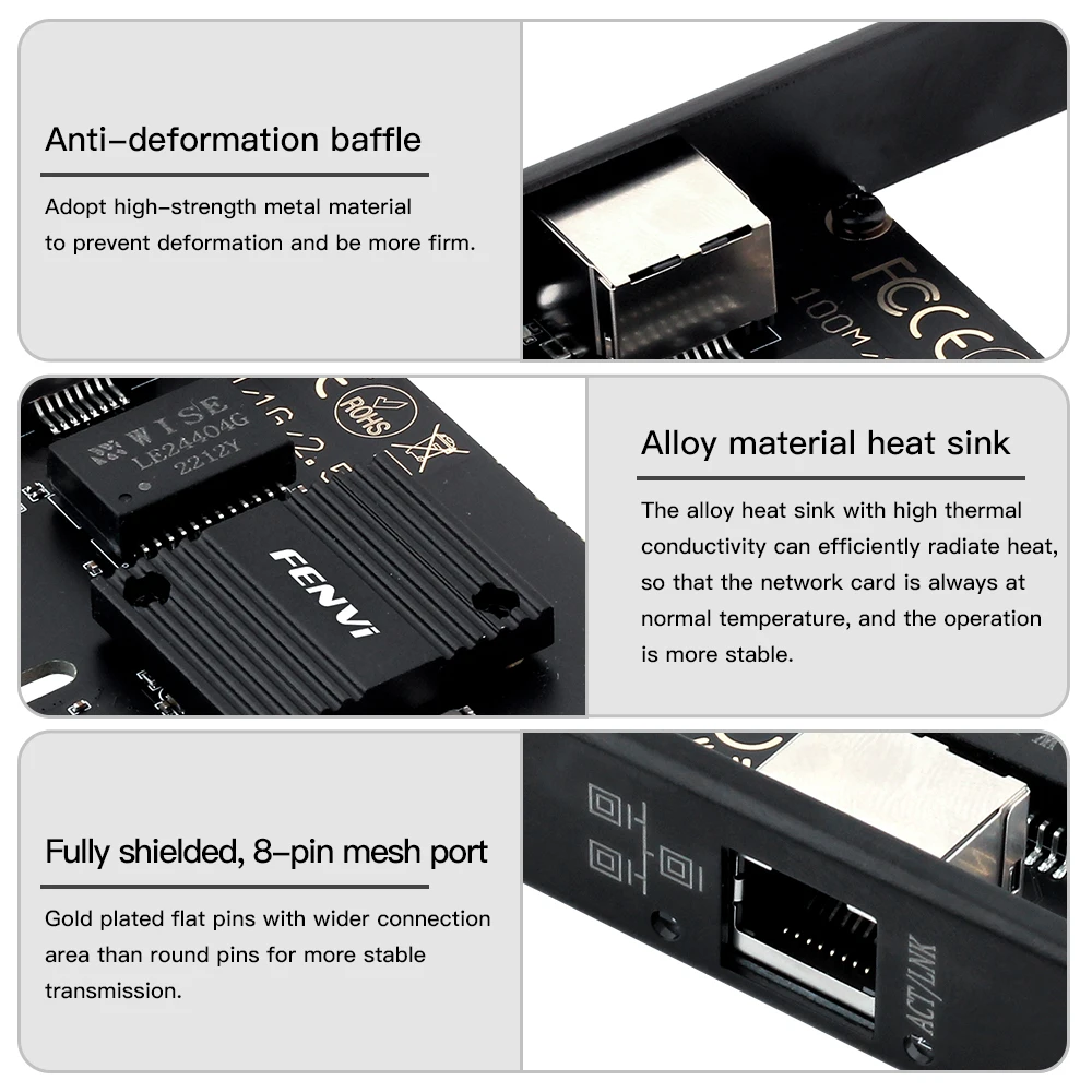 FENVI 2.5G PCI-E a RJ45 I226 Tarjeta de red Gigabit Ethernet 100/1000/2500Mbps LAN PCI Express RJ45 Adaptador WiFi