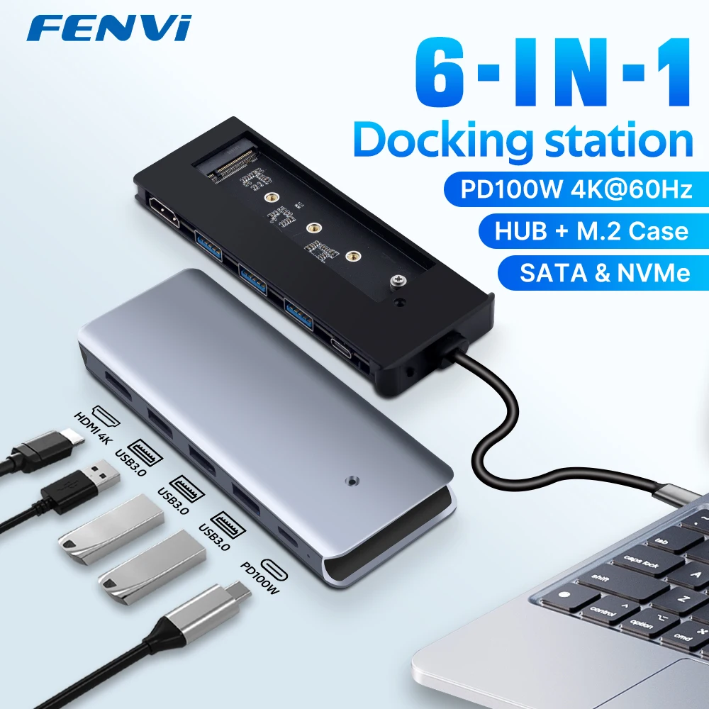 Comprar Fenvi 6 en 1 USB HUB M.2 NVMe SSD disco duro USB 3,0 tipo C a HDMI adaptador Compatible 100W PD para MacBook Pro Laptop PC