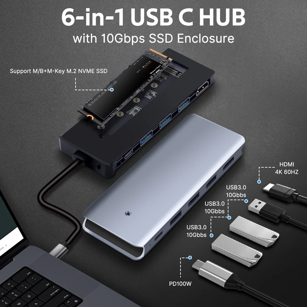 6-ב-1 USB-C משלב m.2 nvme ssd