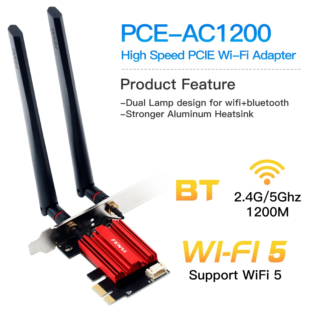 Comprar Fenvi AC1200 WiFi PCIE adaptador 2,4 Ghz/5Ghz Bluetooth FV-AC1200 tarjeta Lan inalámbrica de doble banda 802.11AC receptor inalámbrico Win7/10/11