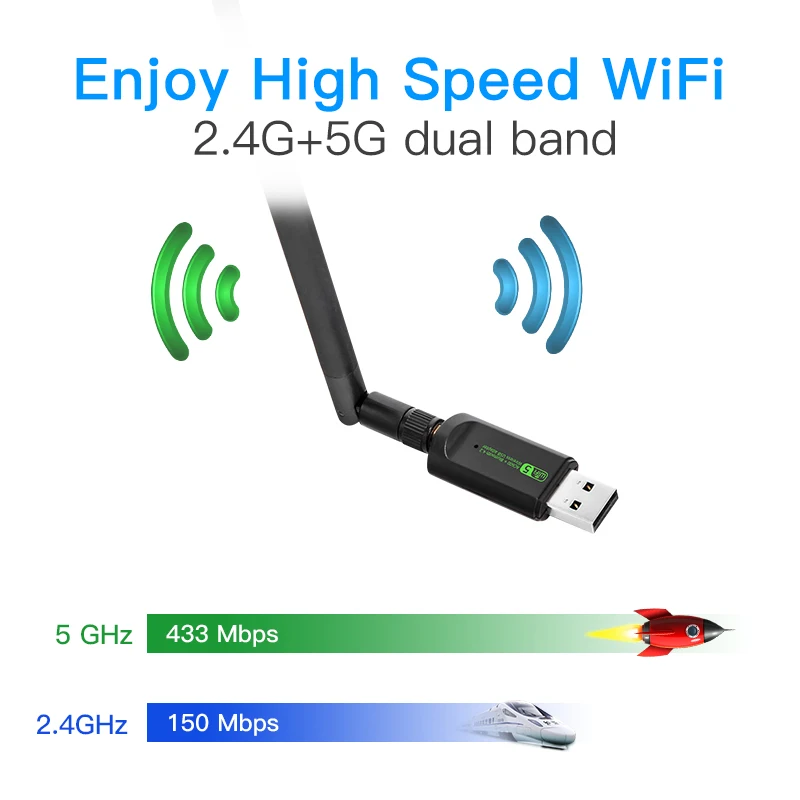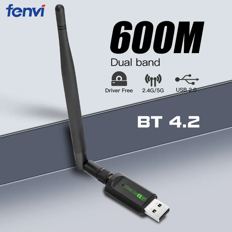 Comprar Fenvi USB WiFi Bluetooth adaptador 600Mbps 2,4G 5GHz antena Wi-Fi banda Dual 802.11ac Mini receptor de tarjeta de red de ordenador inalámbrico