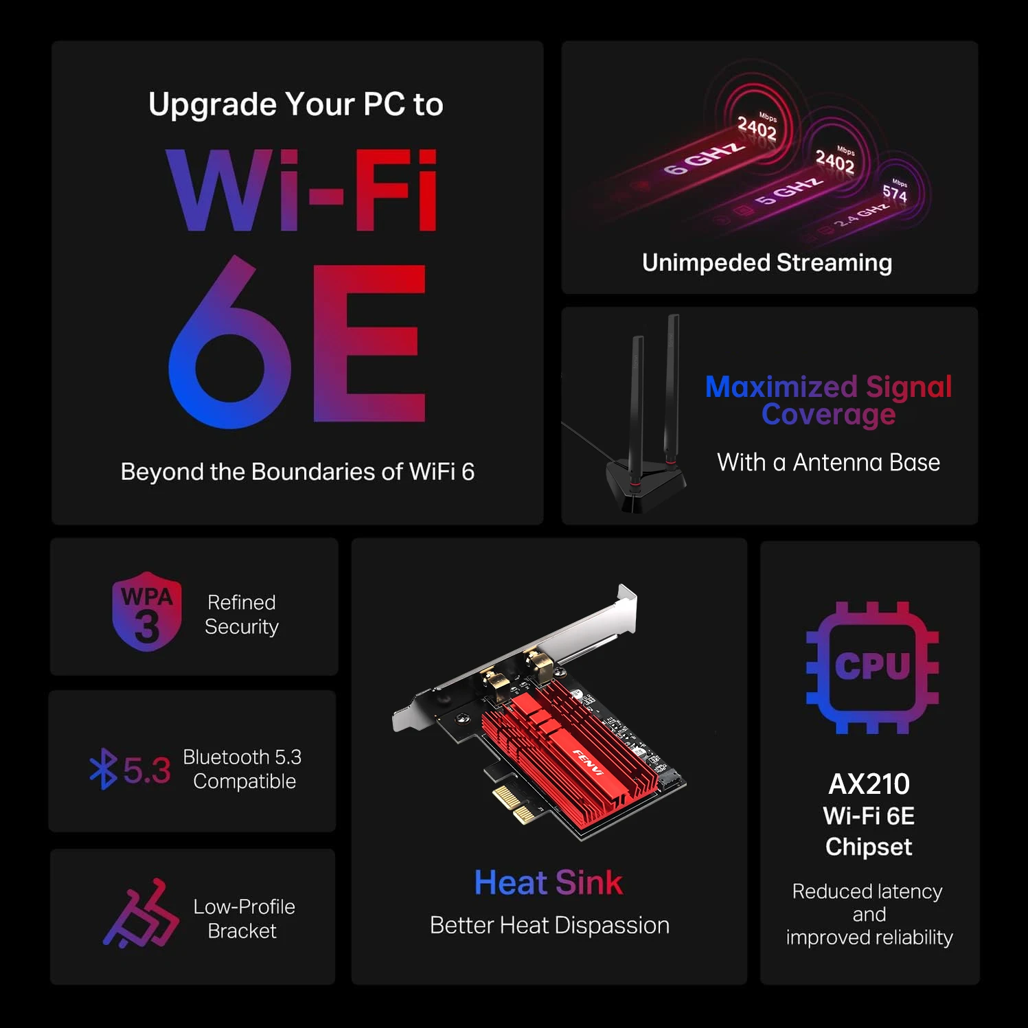 Tarjeta de red inalámbrica FENVI FV-AXE3000Pro WiFi 6E AX210