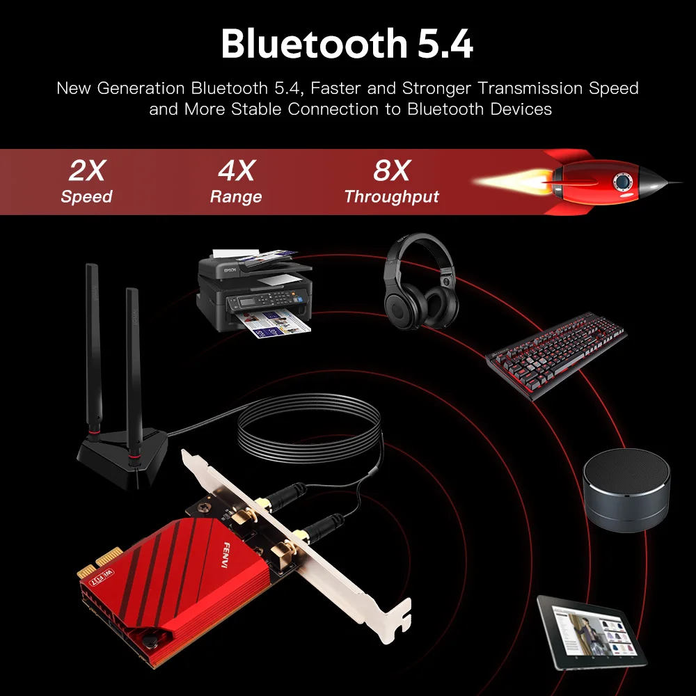 Fenvi BE8800 WiFi 7 6G 8800Mbps Bluetooth 5,4 adaptador PCIE para Windows 10/11-64/sistema Linux antenas potentes