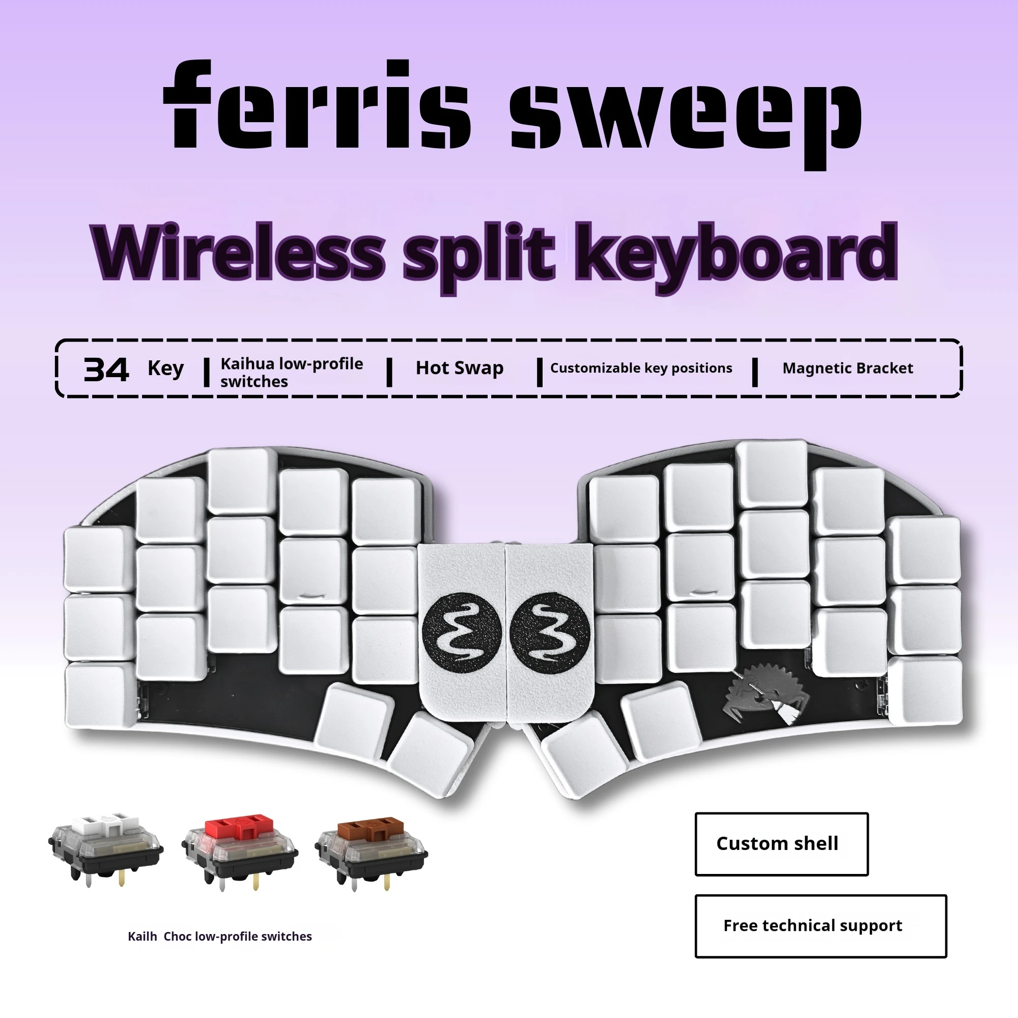 Ferris Sweep (Cradio) Interruptor de perfil bajo de 34 teclas Teclado dividido personalizado Interruptor Kailh de oficina para juegos Patrones y colores personalizados