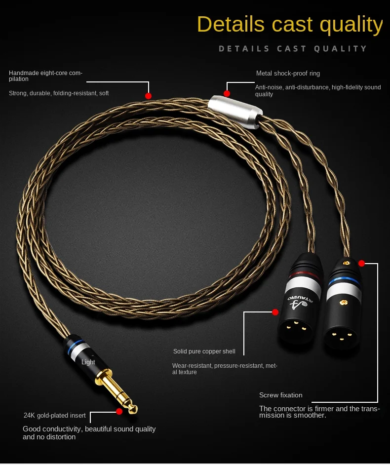 Fever-conversión 6,5 A cañón, cabezal macho Chapado en plata, conversión 6,35 a cañón dual, cable de altavoz mezclador 1/2