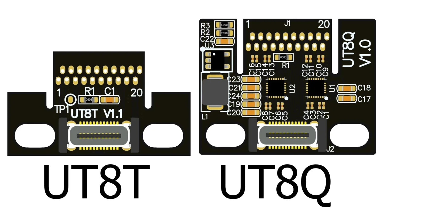 El modelo UT8Q viene con un chip y utiliza el repetidor de señal Redriver (Repetidor IC) de Diodos/Pericom, que puede regenerar señales y mejorar su calidad de señal. Para reducir la tasa de error de transmisión de la señal, consulte el diagrama esquemático de la siguiente manera: