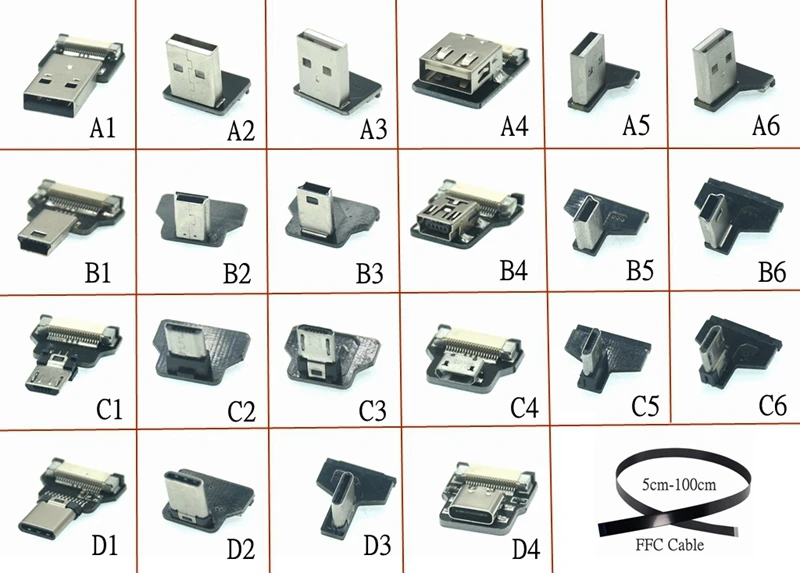 Adaptador FPV 3.1 tipo c de 90 grados, extensión Micro USB FPC de 5cm-100cm
