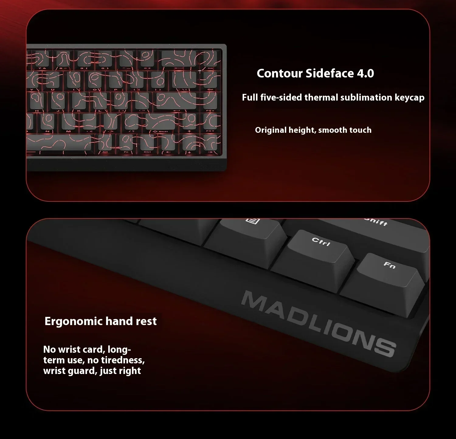 Teclas: Teclas OEM de dos colores/Sublimación de calor grabada en el lado de fábrica original/Tema de contorno negro y rojo de sublimación de calor de cinco lados completo de fábrica original