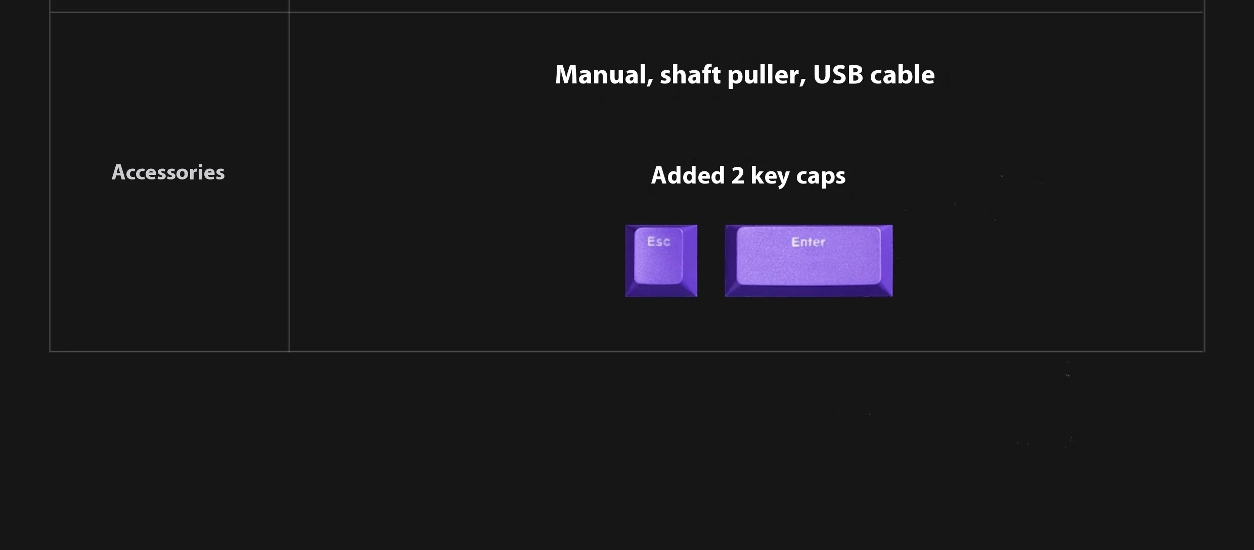 Accesorios: manual, interruptor, cable USB, 2 teclas adicionales (Esc, Enter)