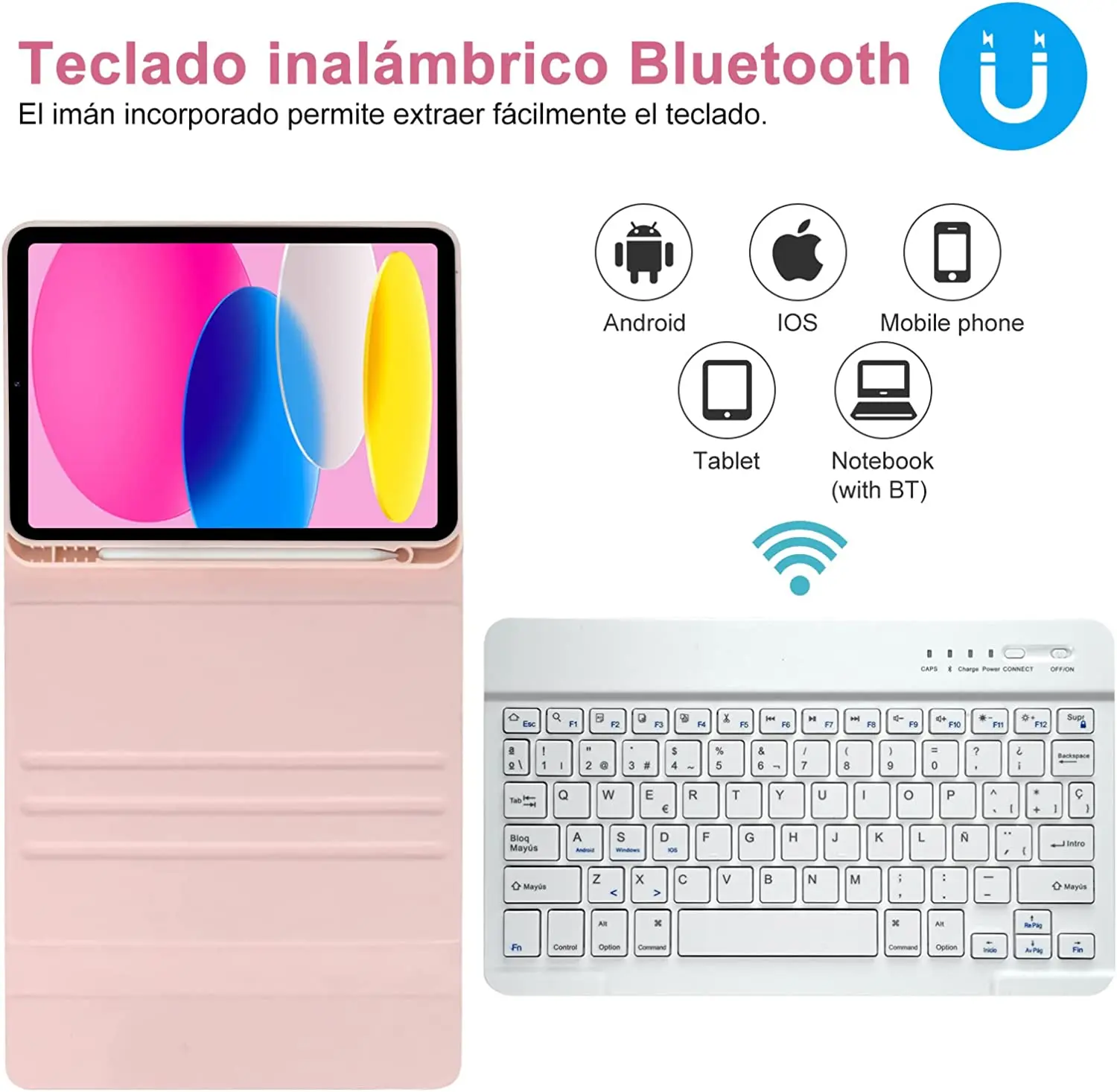 【Compatibilidad】- Funda con Teclado Bluetooth Desmontable- Diseñada para Lenovo Tab M10/K10 FHD