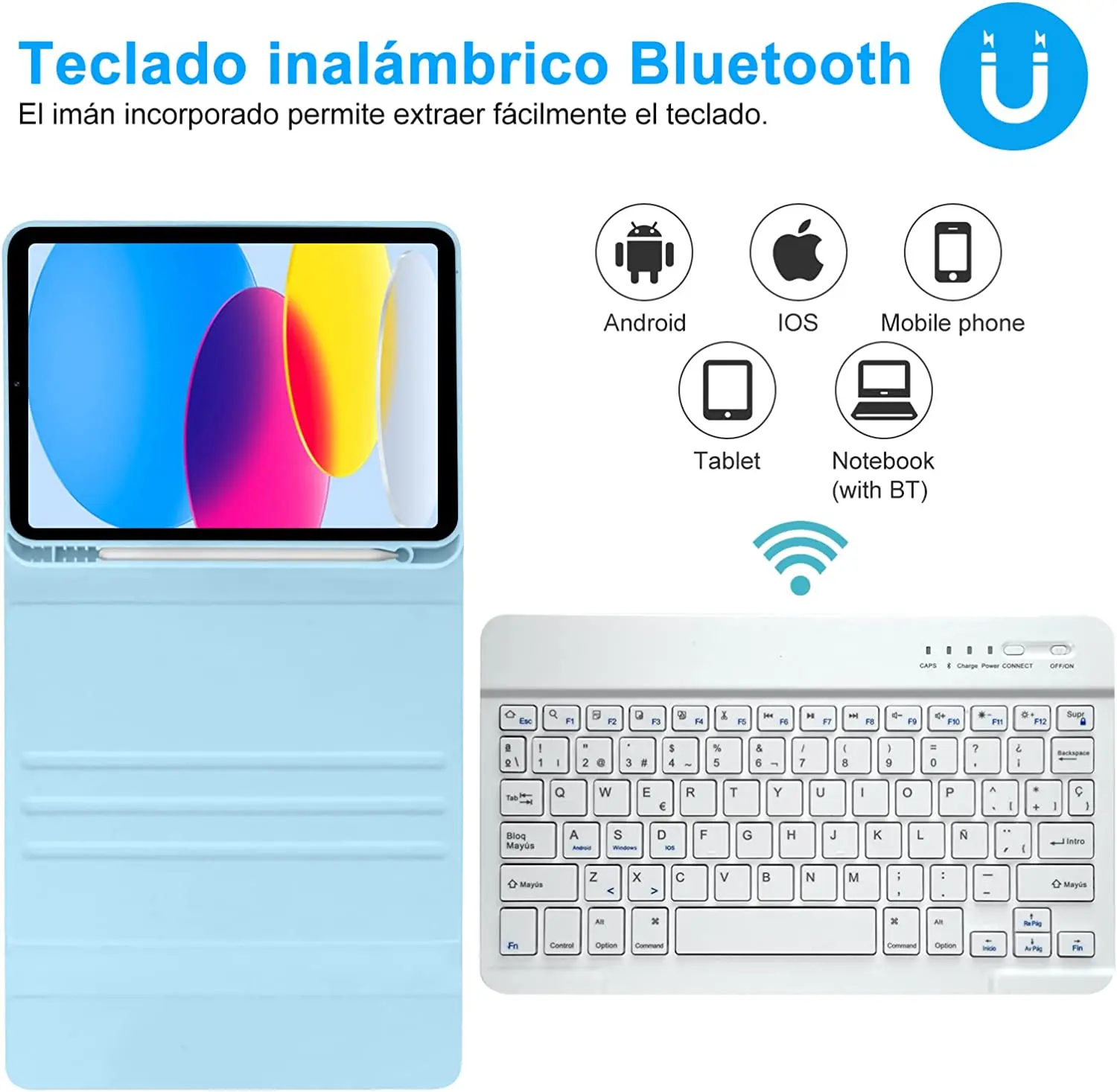【Compatibilidad】- Funda con Teclado Bluetooth Desmontable- Diseñada para Lenovo Tab M10/K10 FHD