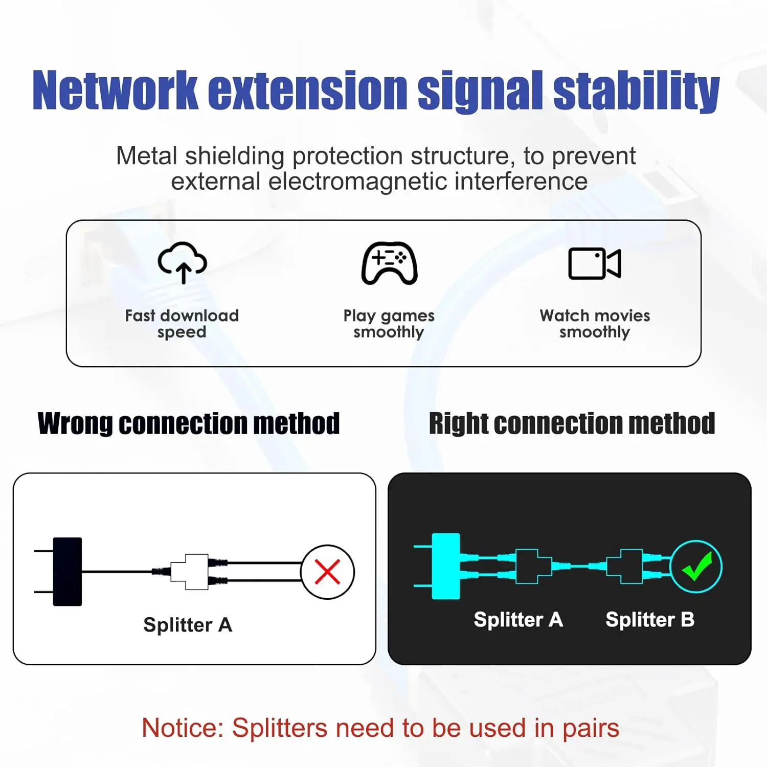 【Amplia compatibilidad】El extensor de puerto divisor de Internet LAN RJ45 funciona con cable Ethernet de red Cat8 Cat7 Cat6 Cat5 Cat5e, que se puede conectar con televisores, decodificadores, enrutadores, dispositivos inalámbricos, computadoras, etc.