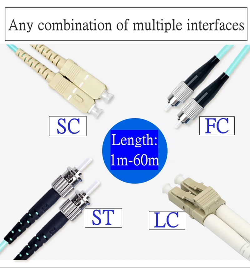 Comprar Fibra óptica OM3 10 Gigabit puente de fibra óptica LC-LC FC-SC-ST Cable de fibra óptica multimodo de doble núcleo 1m 2m 3m 10m 50m