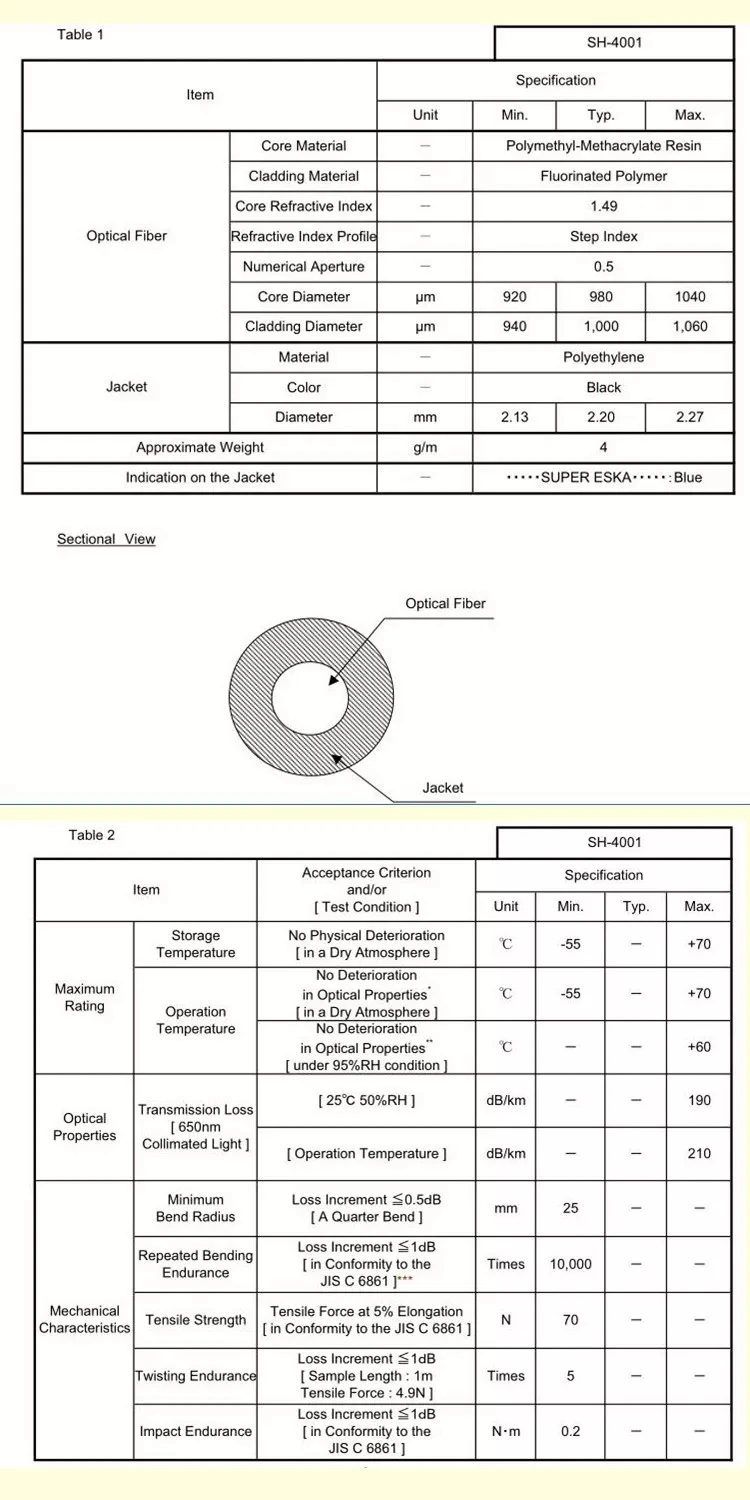 30mtr SH-4001 fibra de plástico súper simple 2,2*1,0 reemplazar HFBR-EUS/RUS500Z
