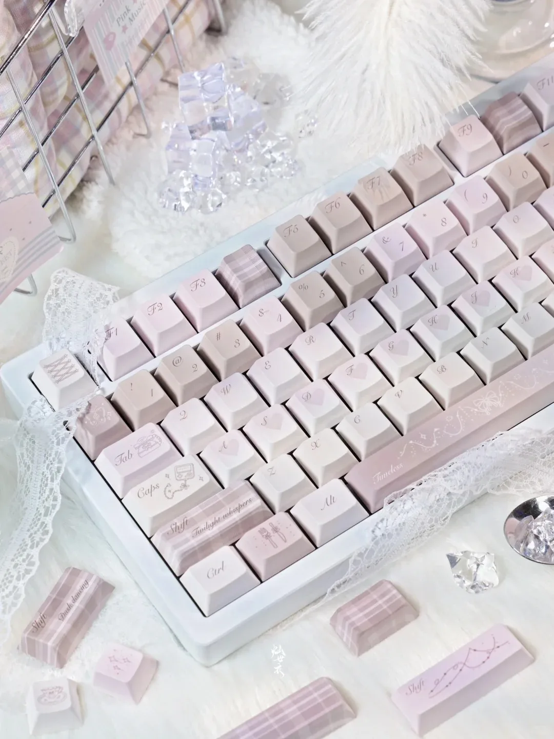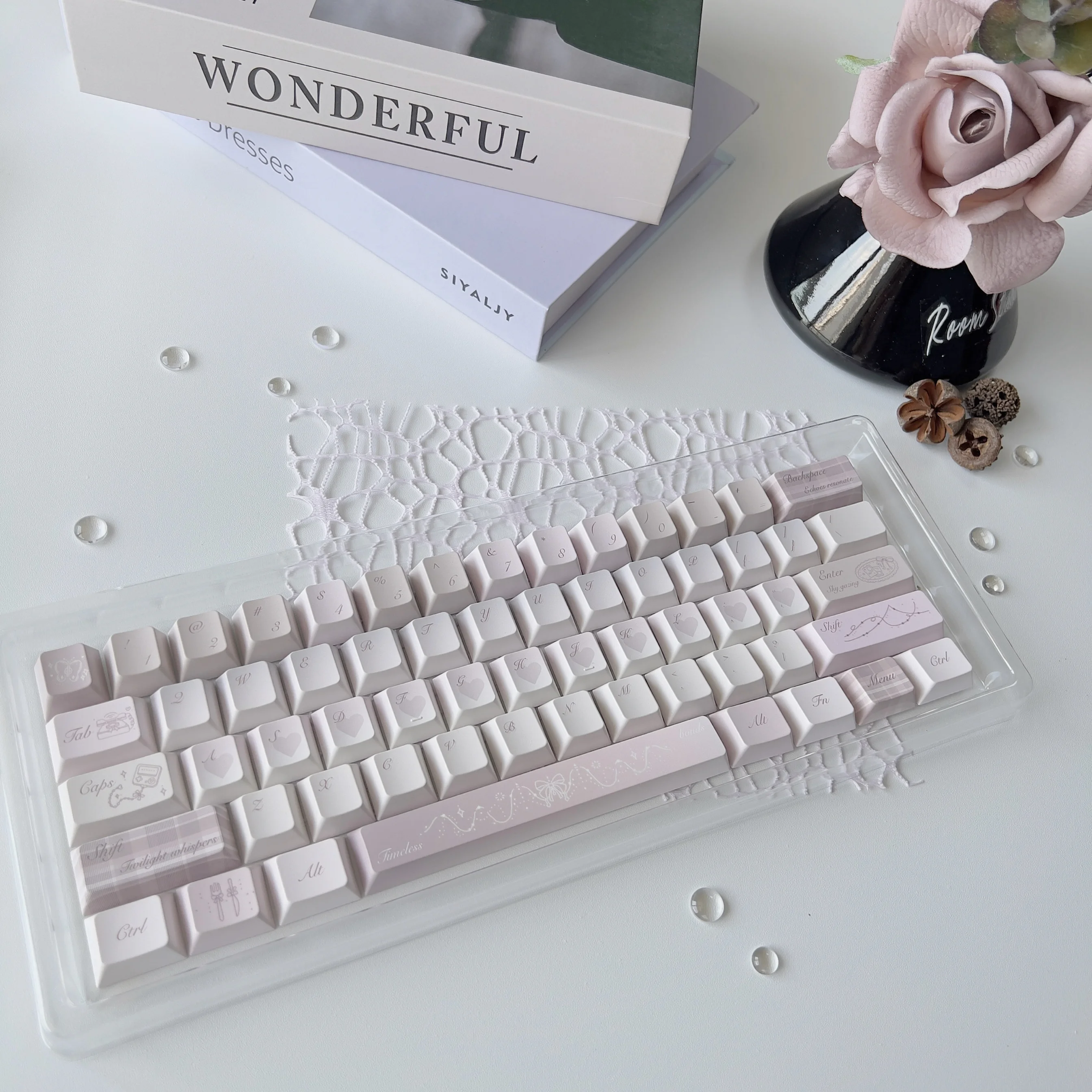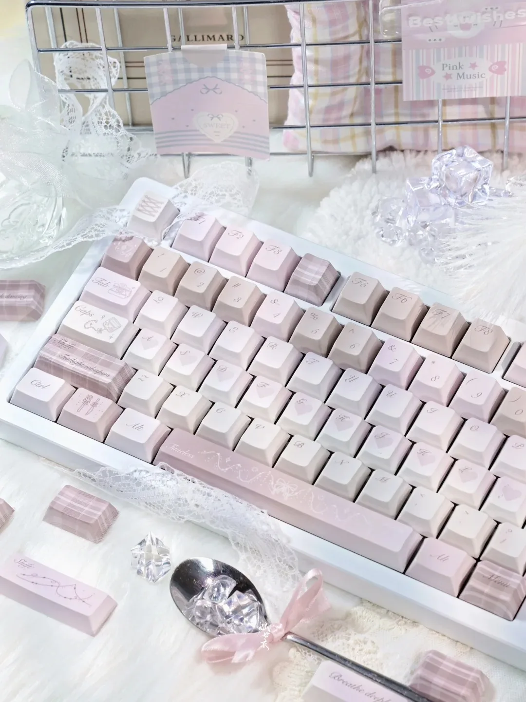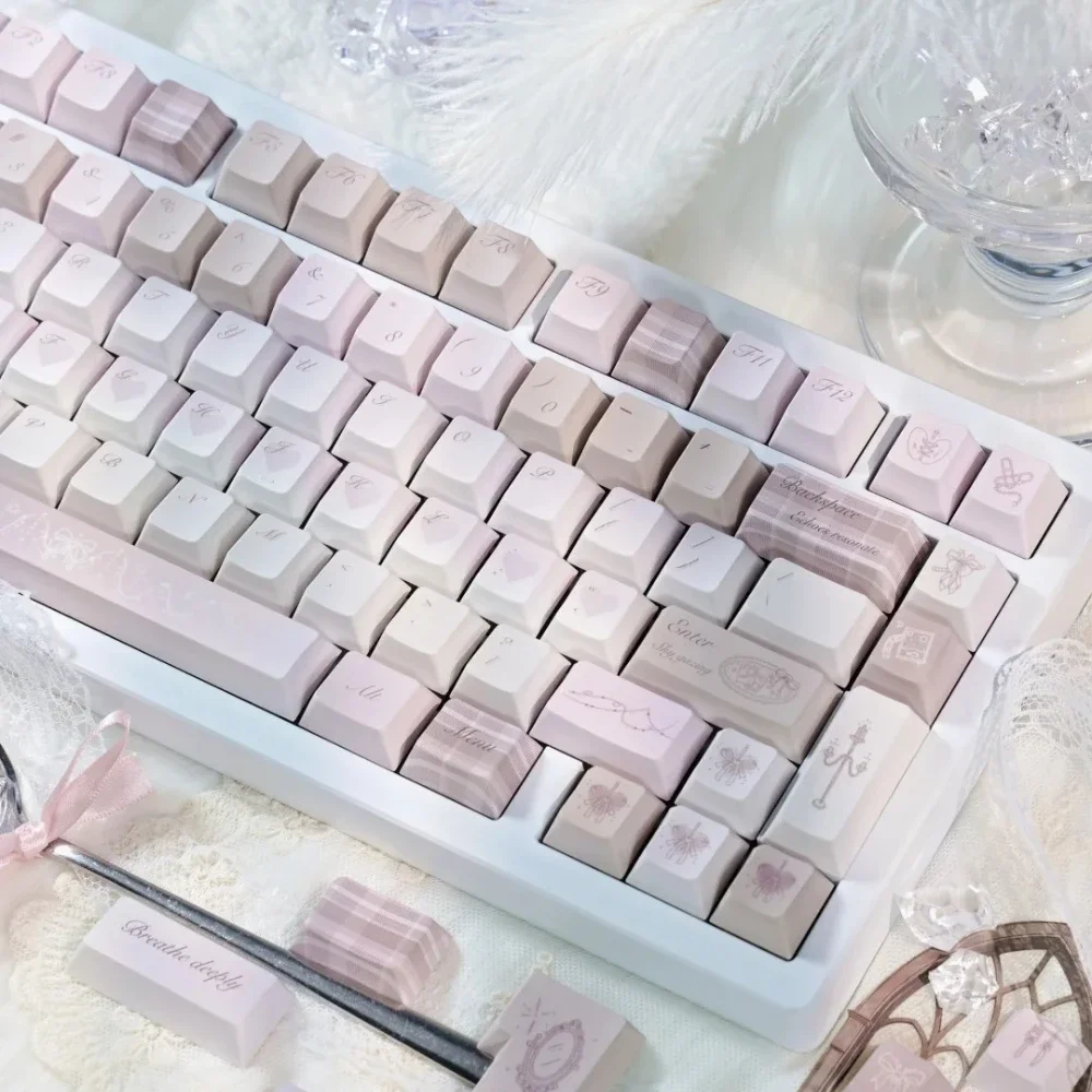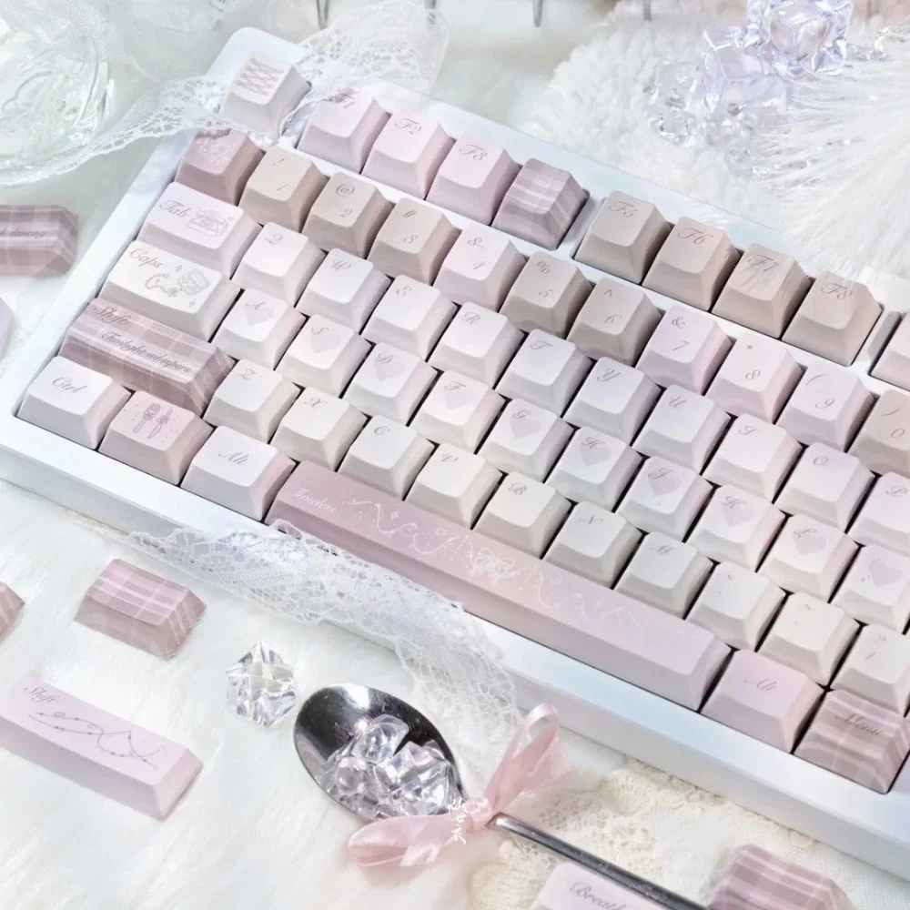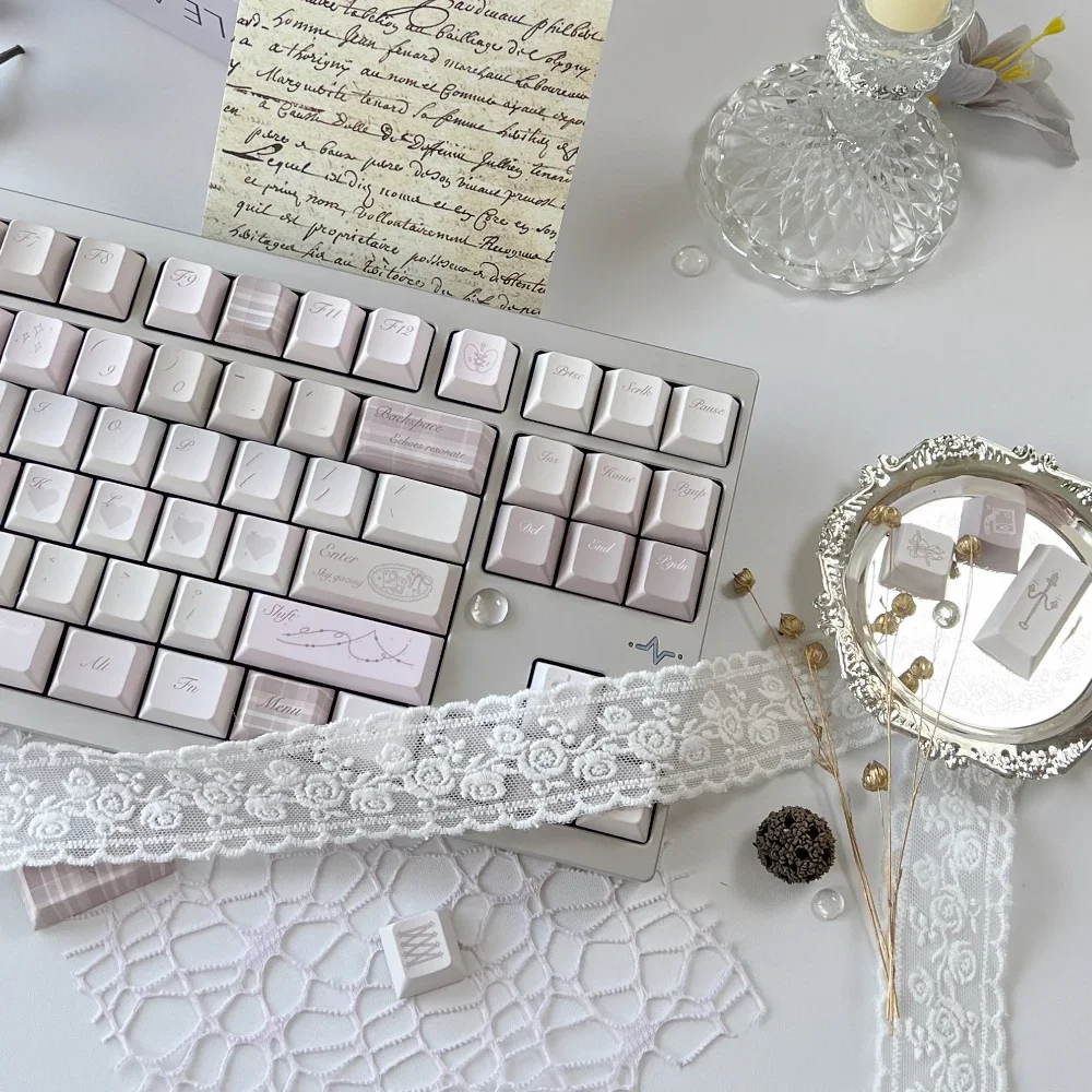 Comprar Fickle-Tapa de teclado personalizada, teclas de estilo francés gris-Rosa, elemento de corazón de arco de sublimación PBT, perfil de cereza
