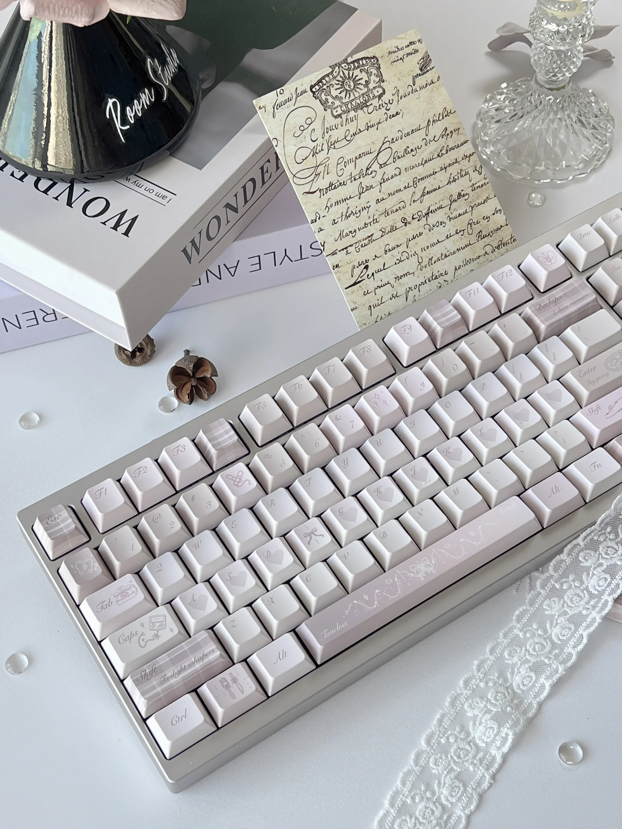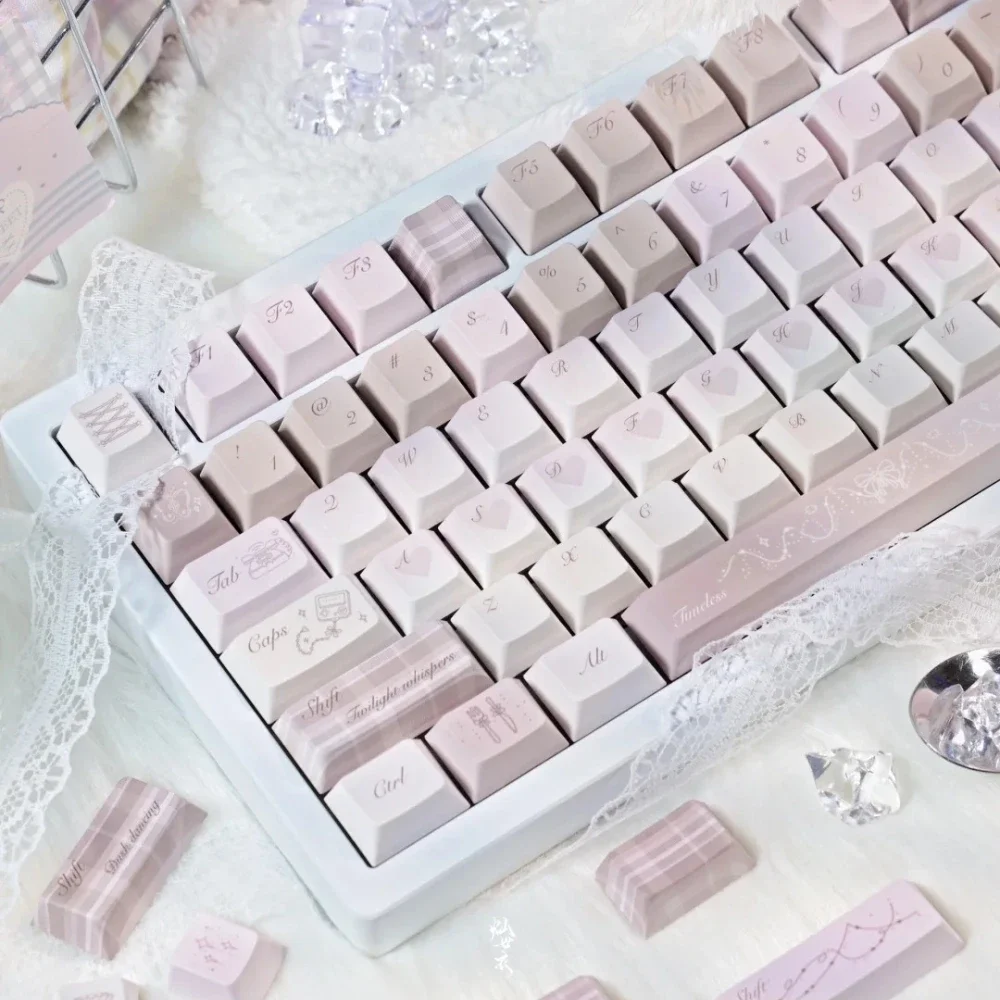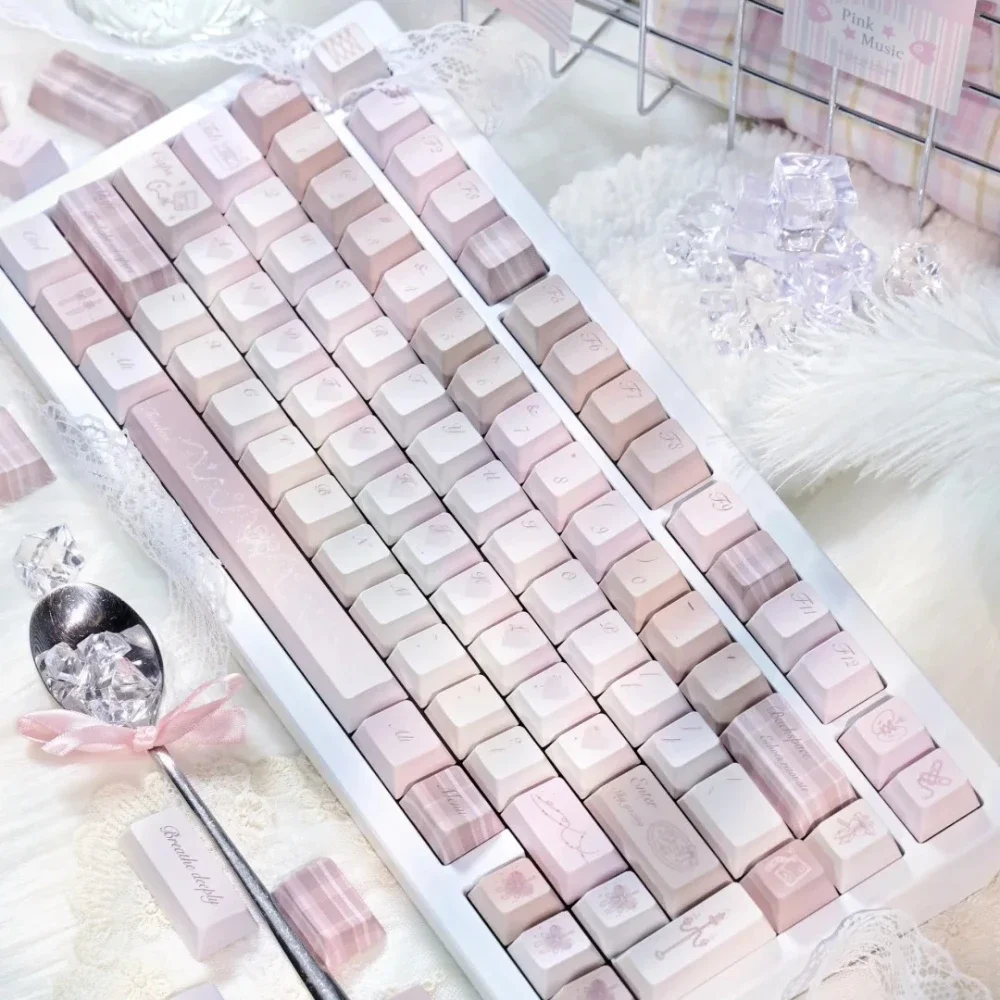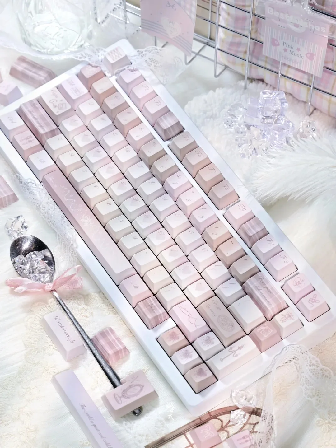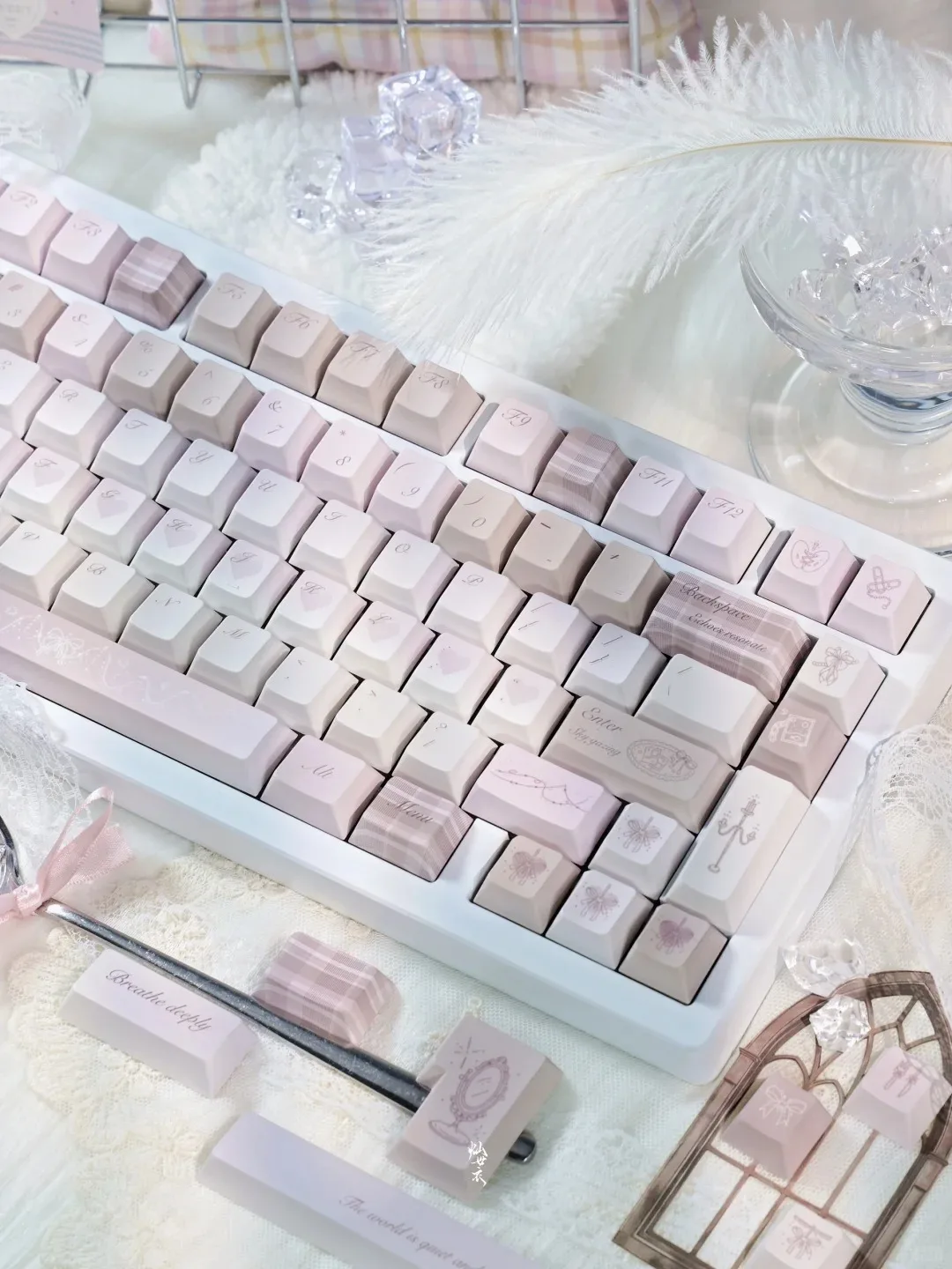Comprar Fickle-Tapa de teclado personalizada, teclas de estilo francés gris-Rosa, elemento de corazón de arco de sublimación PBT, perfil de cereza