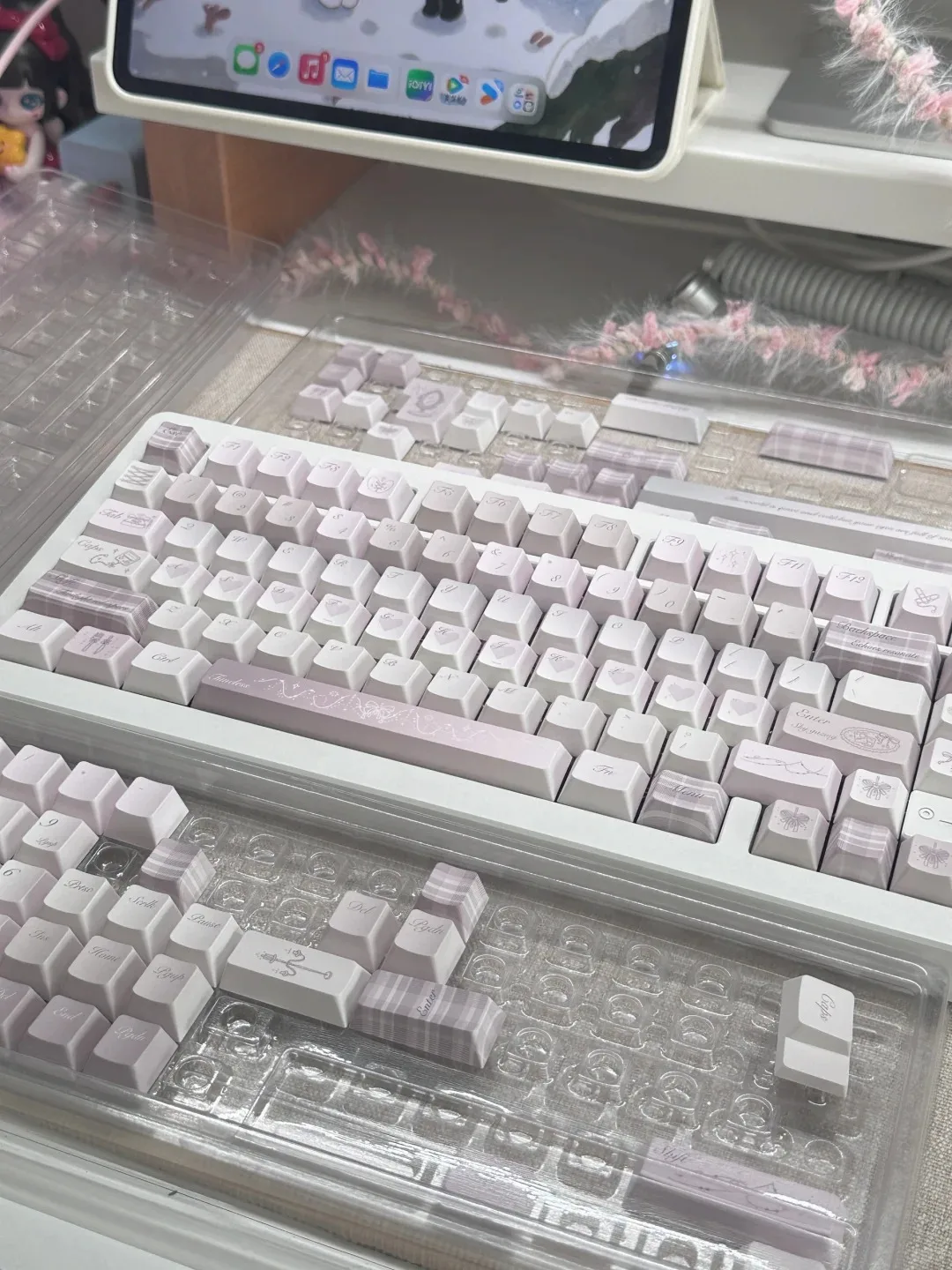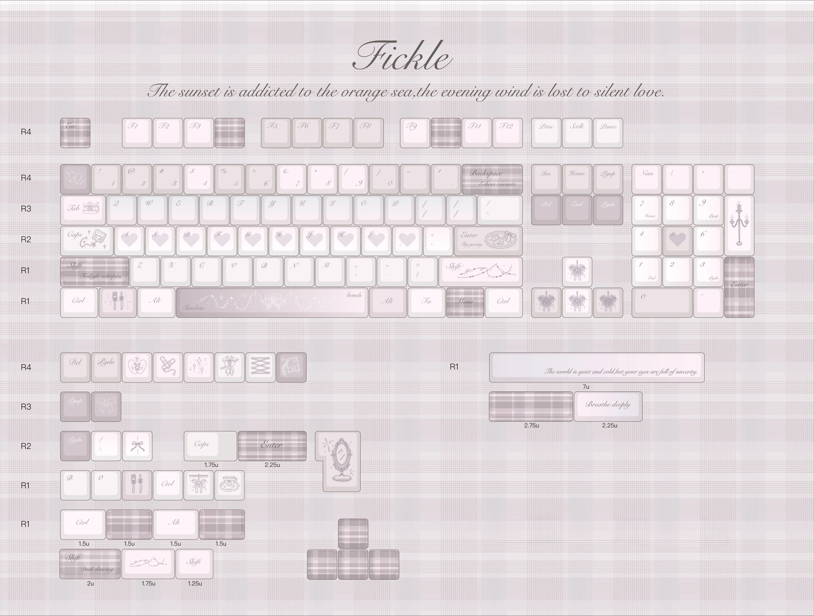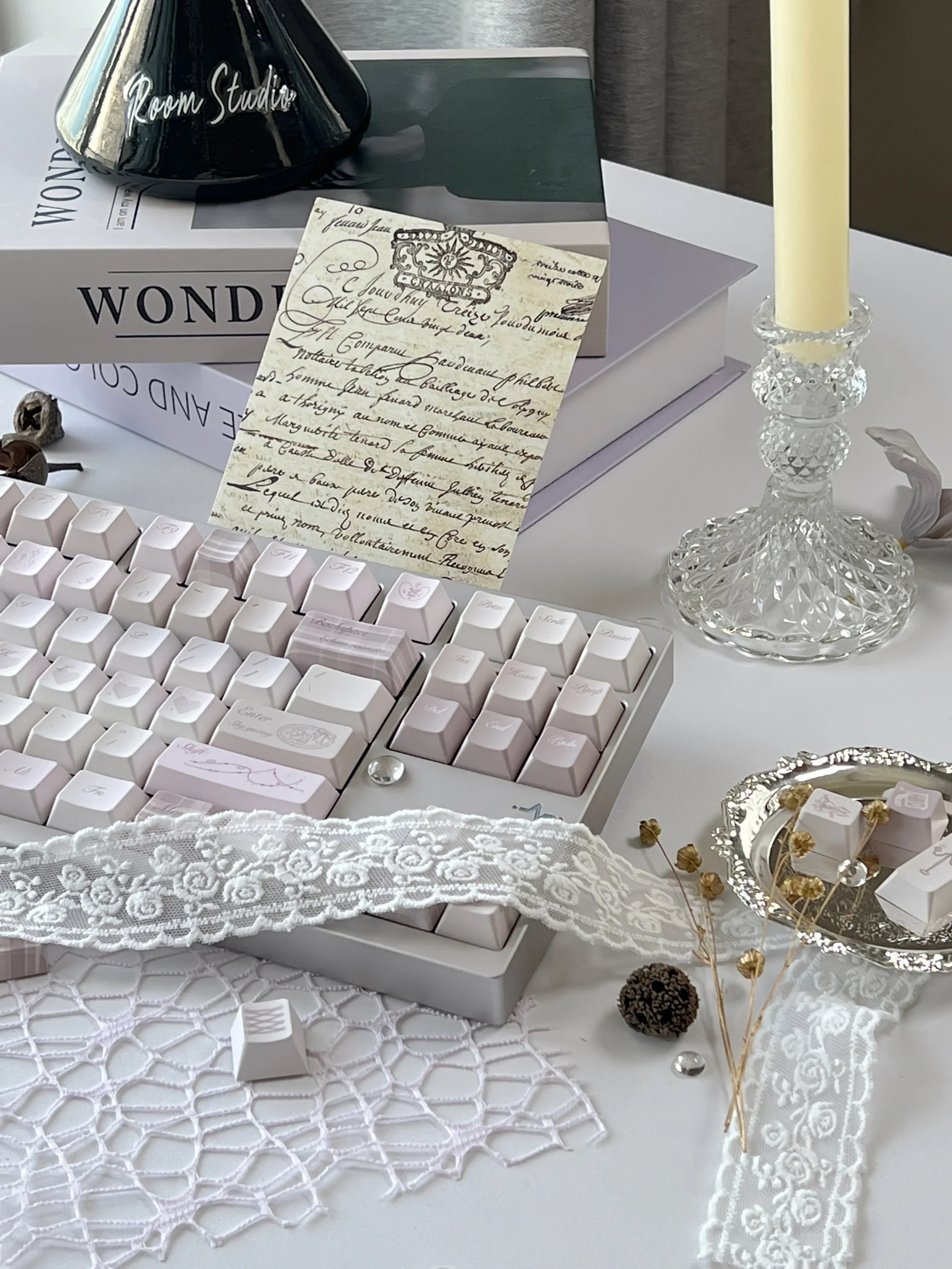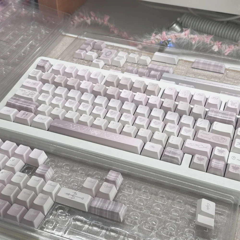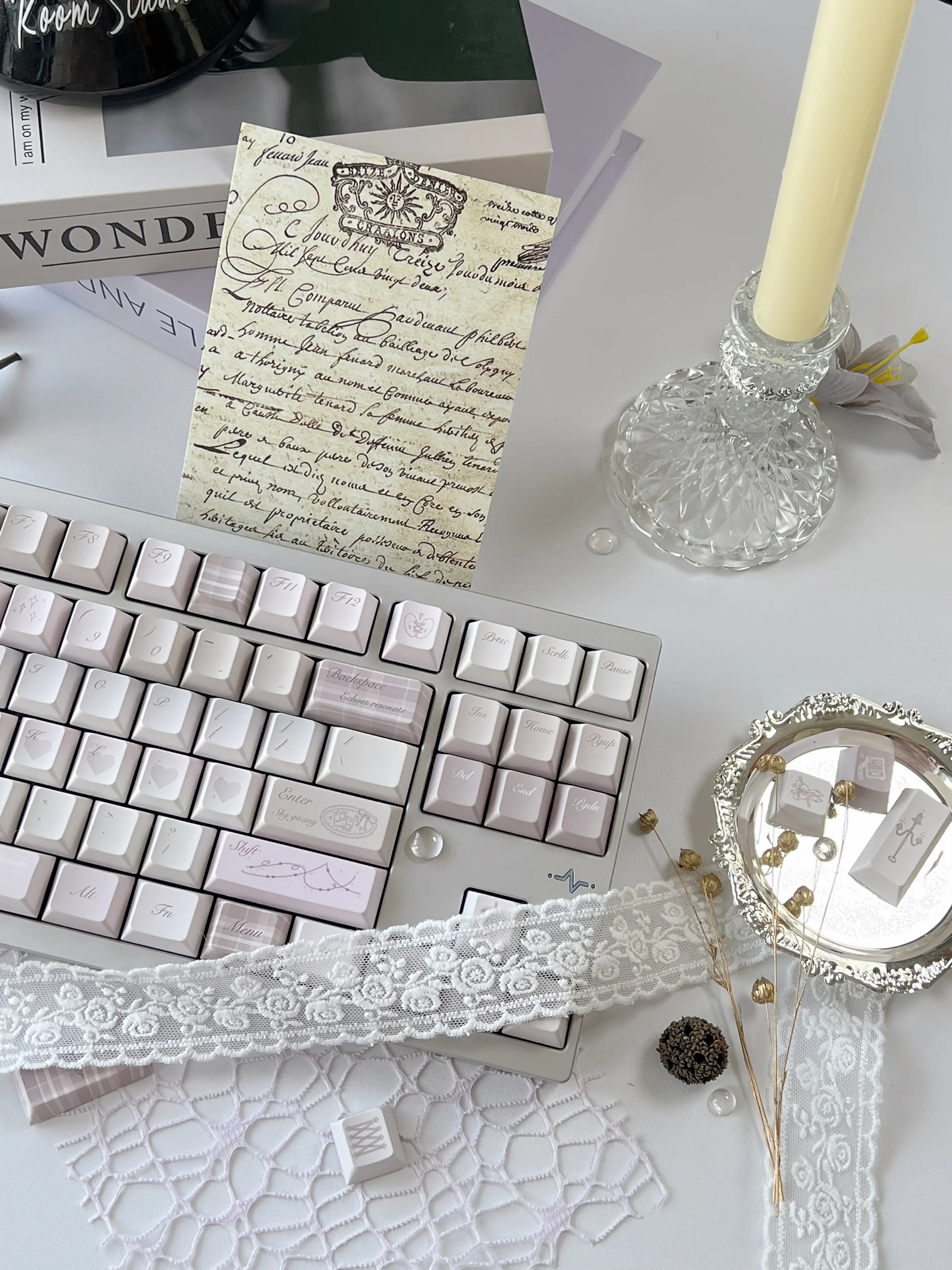 Comprar Fickle-Tapa de teclado personalizada, teclas de estilo francés gris-Rosa, elemento de corazón de arco de sublimación PBT, perfil de cereza