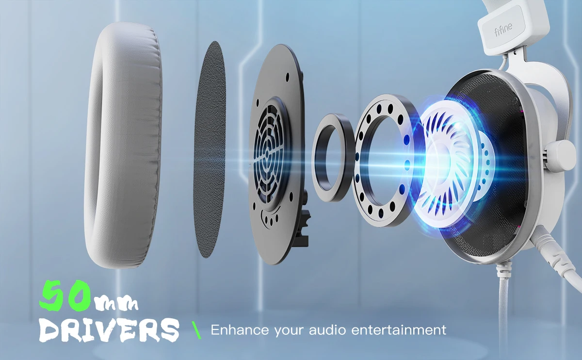 With a weight of only 330g, FIFINE H6 gaming headset is designed to provide a lightweight. The headband and ear cushions are padded with soft memory foam, and the all-around design fits your ears comfortably. In addition, the adjustable headband fits different head sizes and reduces the pressure of the headset on your head, that ensuring long-lasting gaming sessions without any discomfort or pressure on your ears.