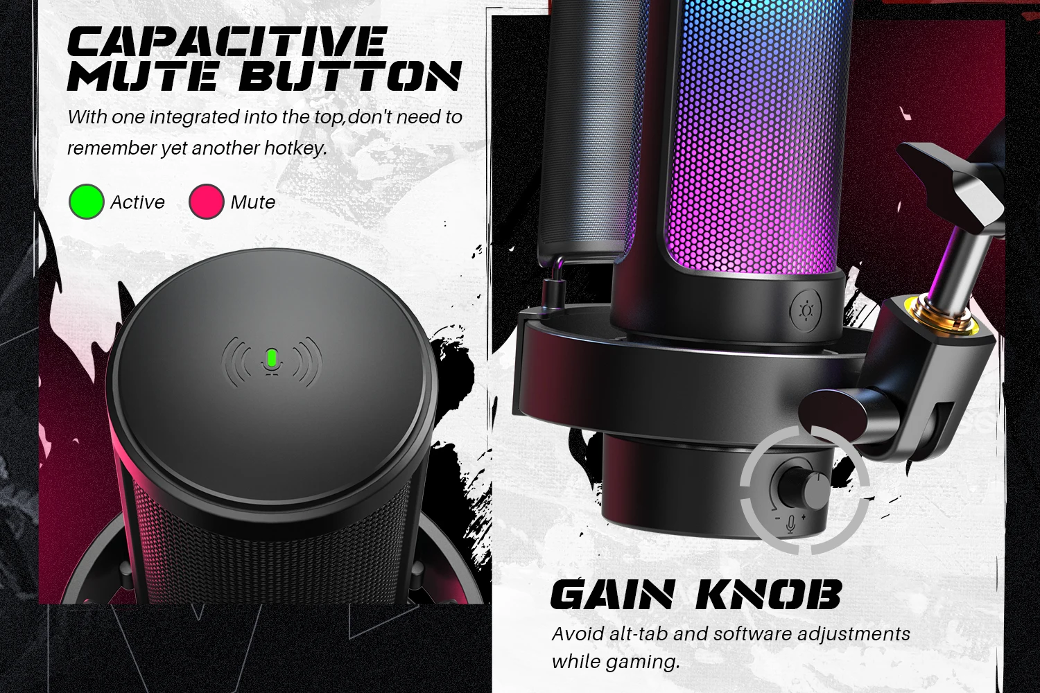 El conector para auriculares de 3,5 mm le permite controlar si el audio es demasiado bajo o alto en transmisiones o vídeos de YouTube.Con retroalimentación en tiempo real puedes usar la perilla de ganancia de entrada en lugar de las teclas de acceso rápido y ajustar el volumen del micrófono.Puedes silenciar el micrófono con un solo toque para evitar estornudos en la sala de chat de juegos.
