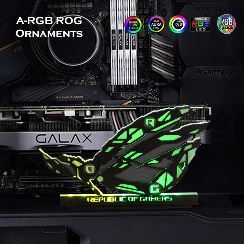 Comprar Figura mágica ROG RGB Republic Of Gamers, adornos hechos a mano para PC de escritorio, decoración de juegos personalizada