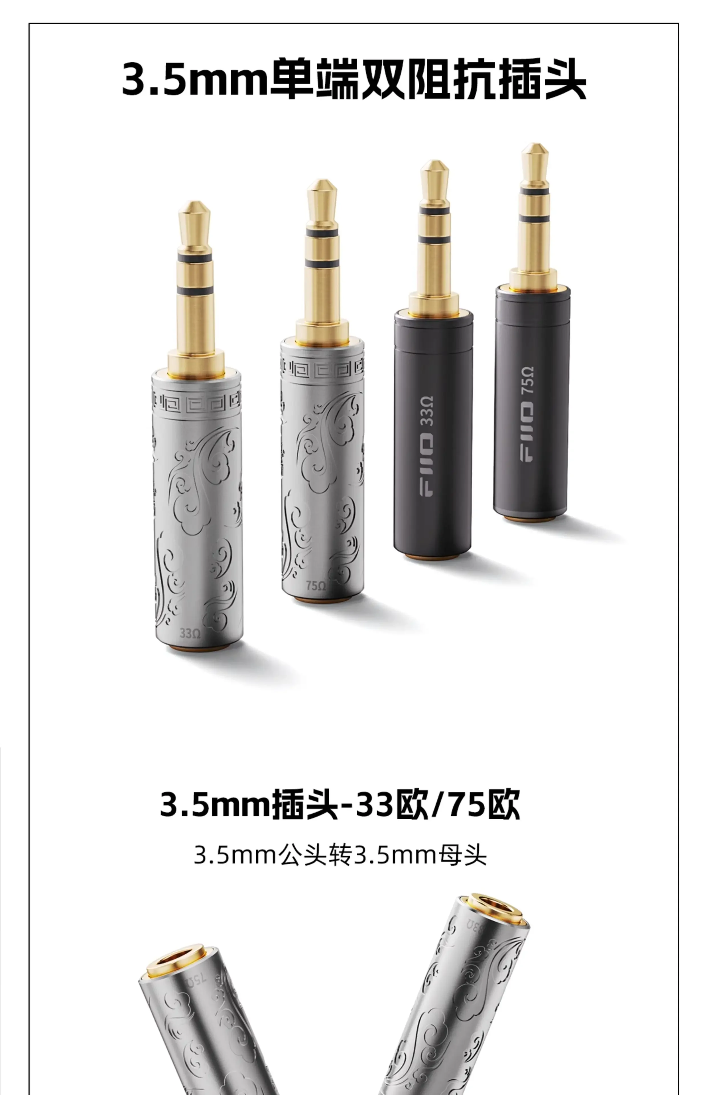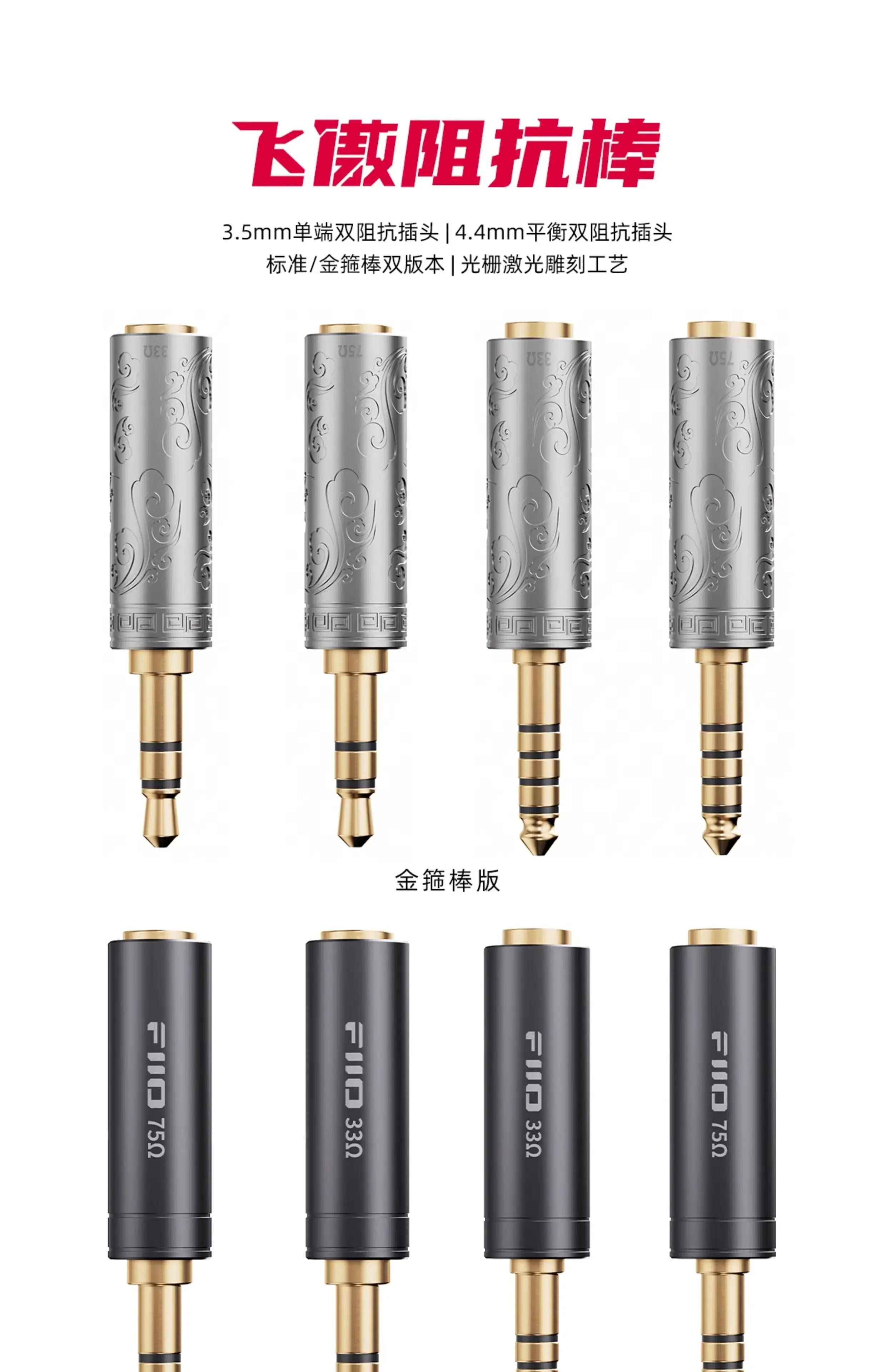 FiiO 33ohm 75ohm enchufe de impedancia 3,5mm/4,4mm conector enchufe de impedancia alta calidad de sonido accesorios portátiles para juegos para regalos