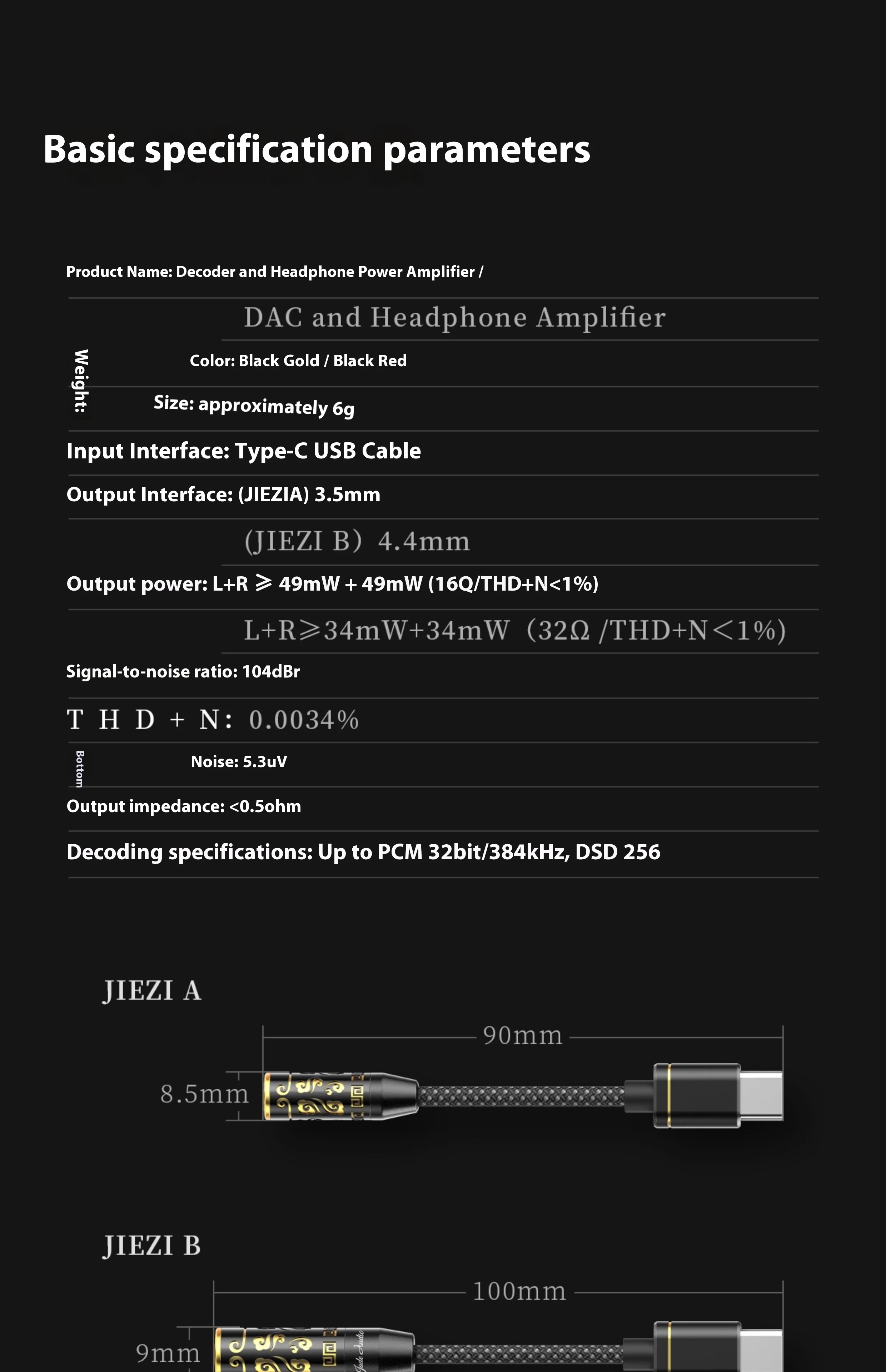 FiiO JIEZI adaptador de auriculares amplificador HiFi portátil DSD amplificador de auriculares PCM 384kHz DSD256 TypeC decodificador de enchufe 3,5mm/4,4mm