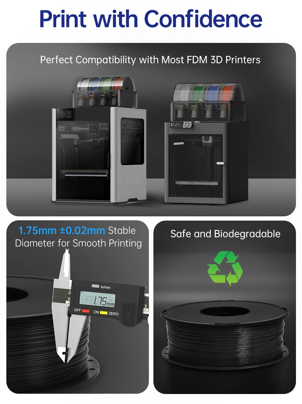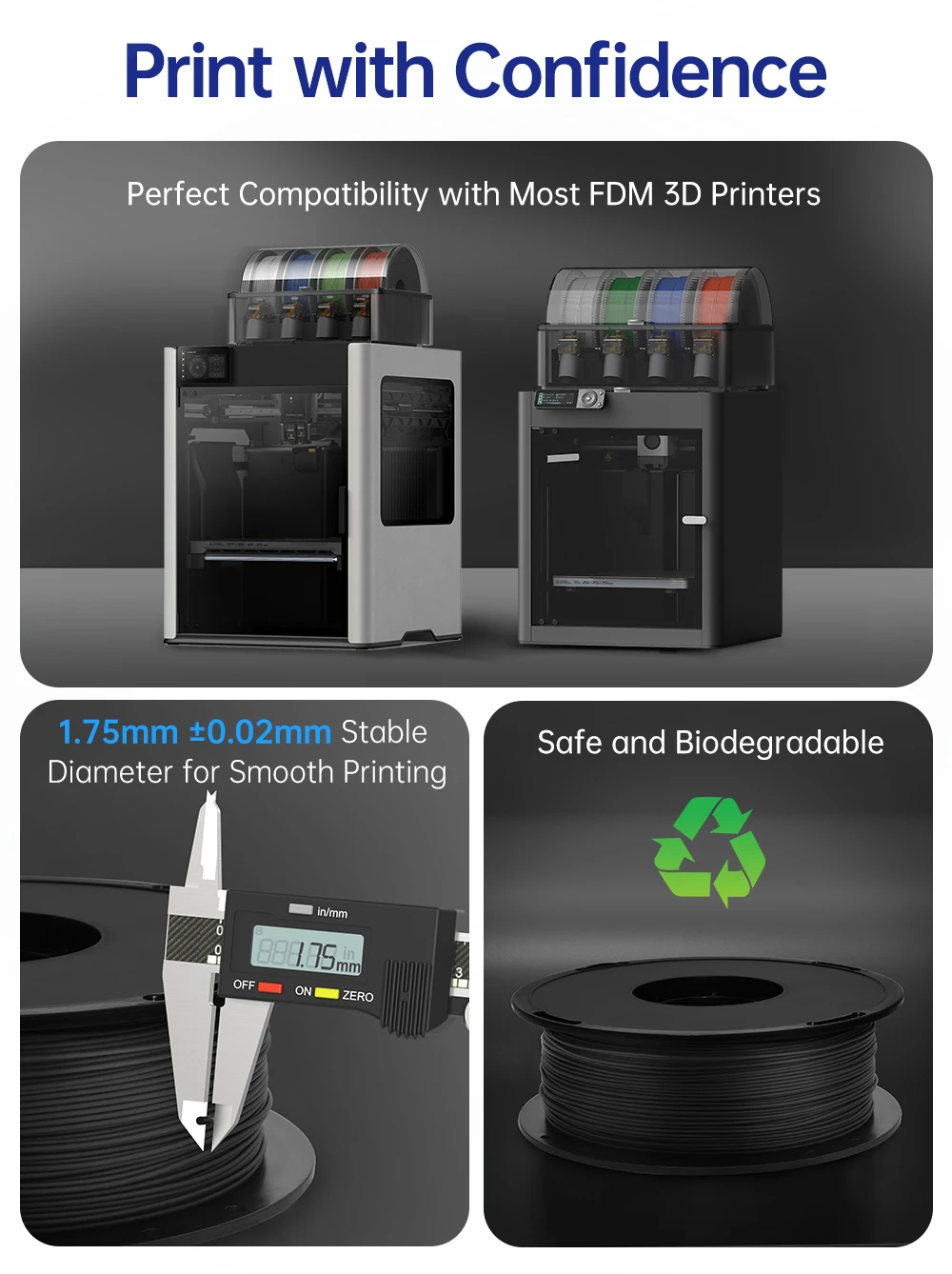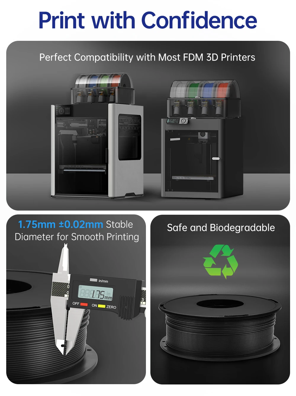 Temperatura de la cama90-100°CImpresoras compatiblesCompatible con una amplia gama de impresoras FDMPeso1 kg/CarreteInstrucciones de uso y almacenamientoAntes de usar:*Seque completamente el filamento antes de imprimir.*Mantenga el embalaje sellado al vacío sin abrir hasta que esté listo para usar.Durante el uso:*Usar dentro de una semana después de abrir.*Quitar el filamento si no se usa durante un período prolongado para evitar la absorción de humedad.Almacenamiento: · Almacenar en un ambiente fresco, seco y oscuro.