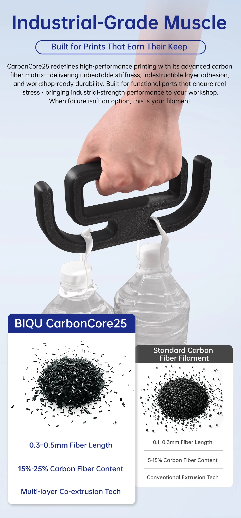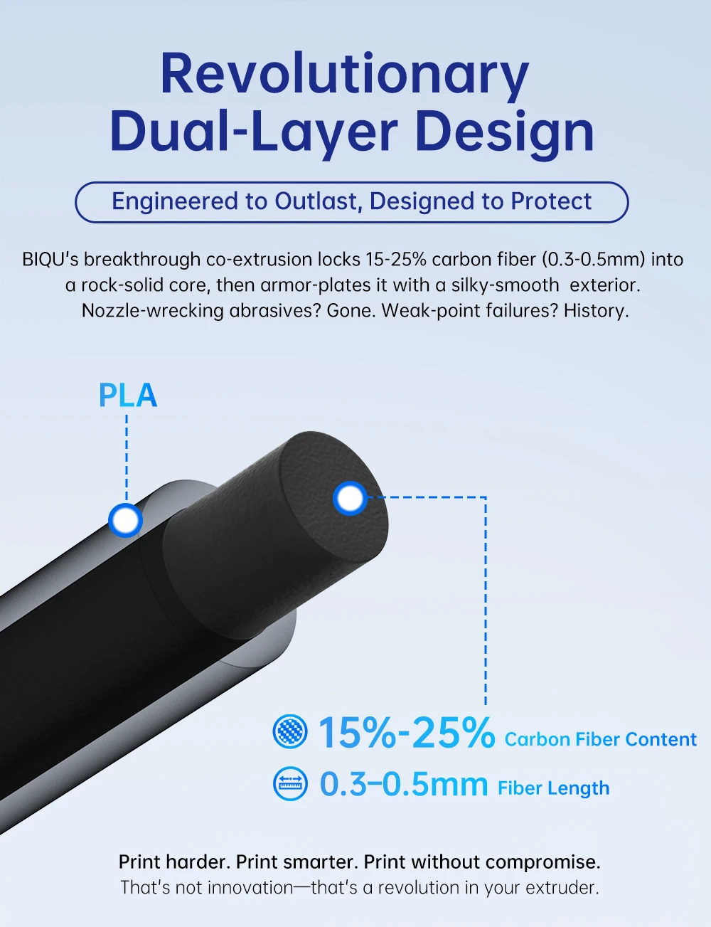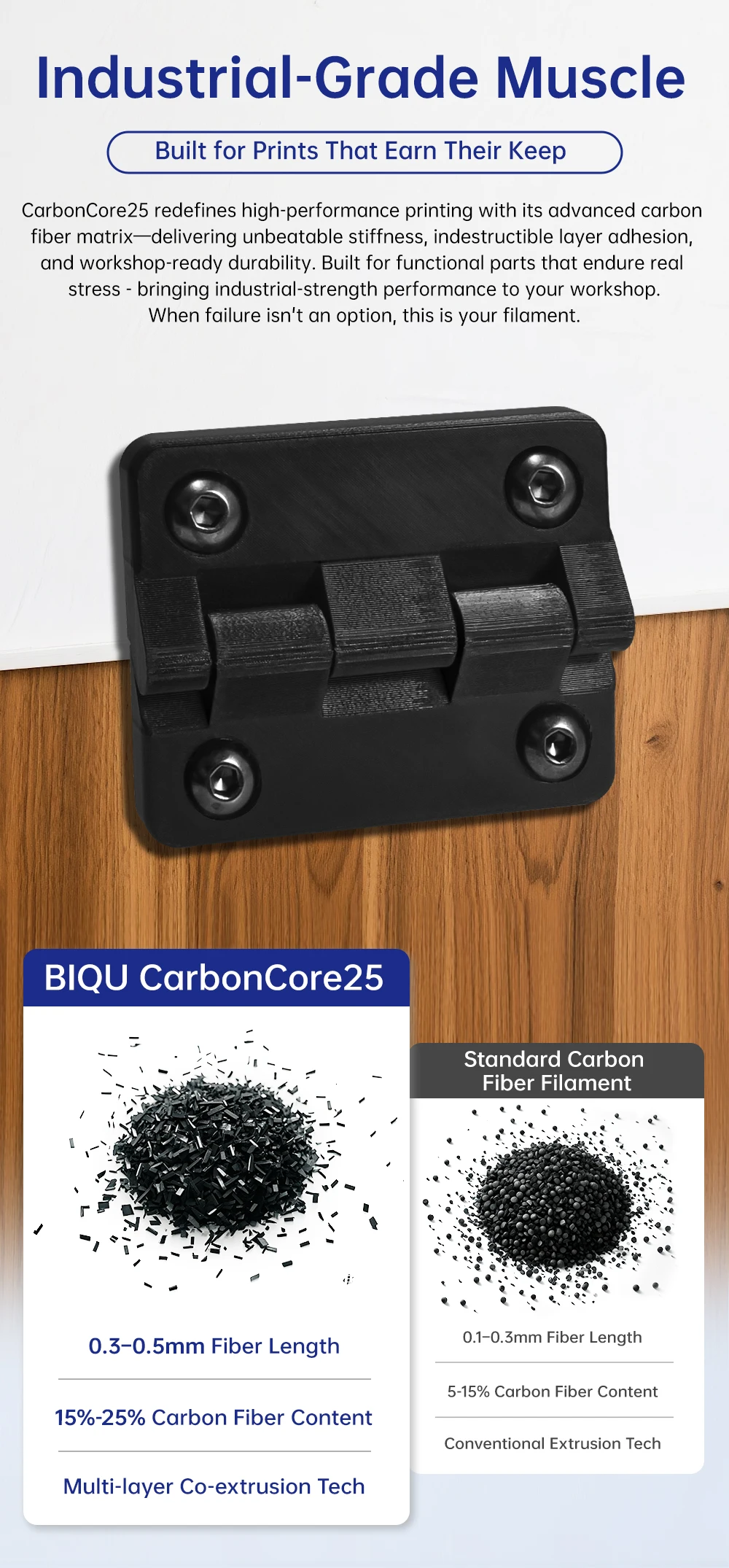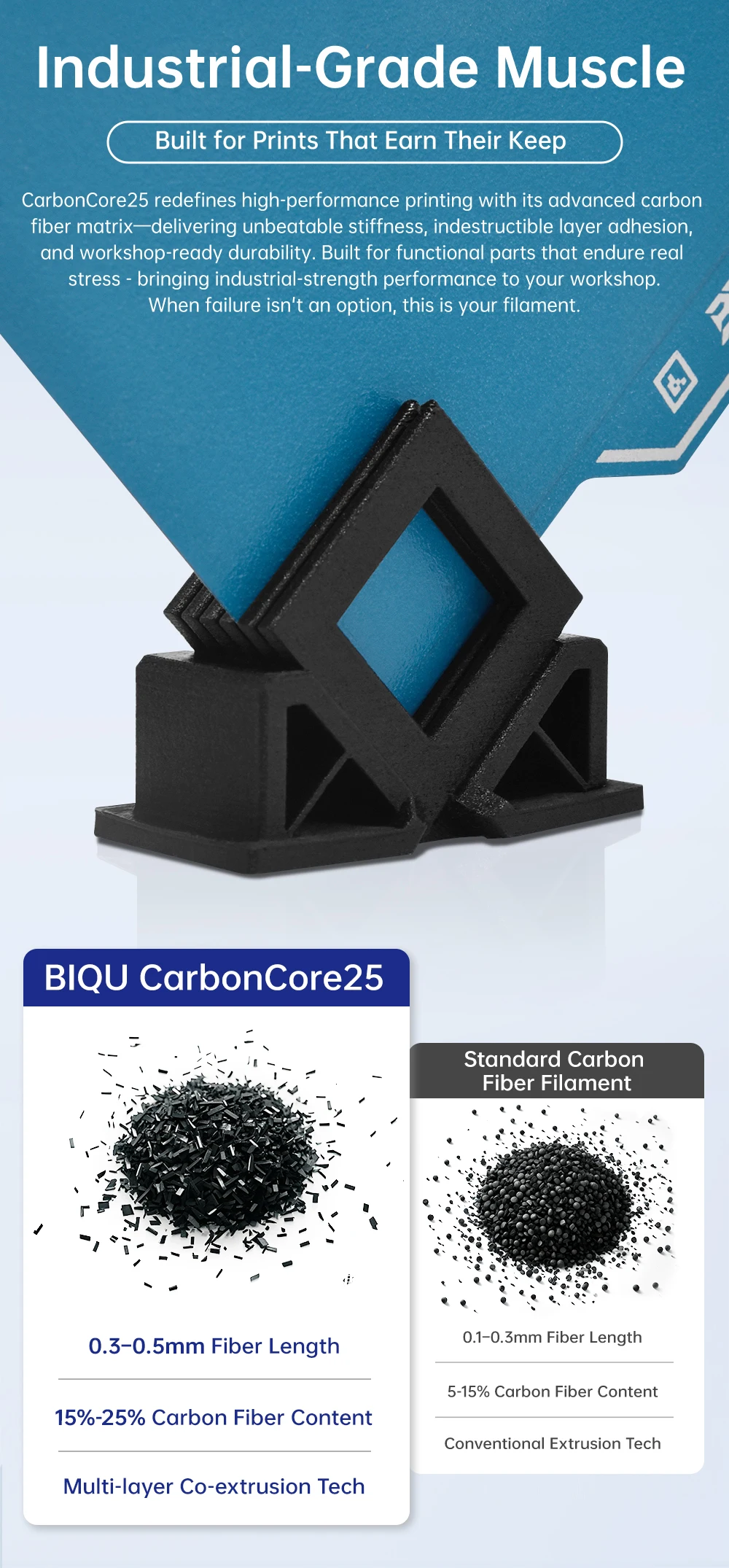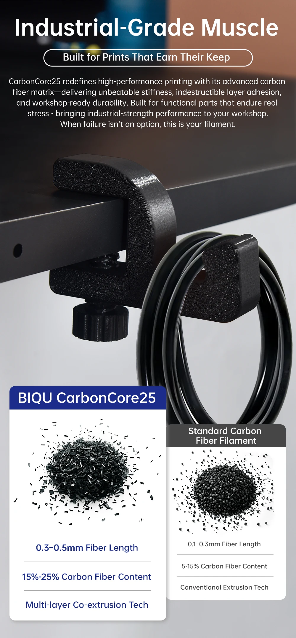 Comprar Filamento BIQU CarbonCore25 PLA 1,75mm Filamento de impresora 3D resistente al desgaste y al calor, filamento de fibra de carbono 1kg