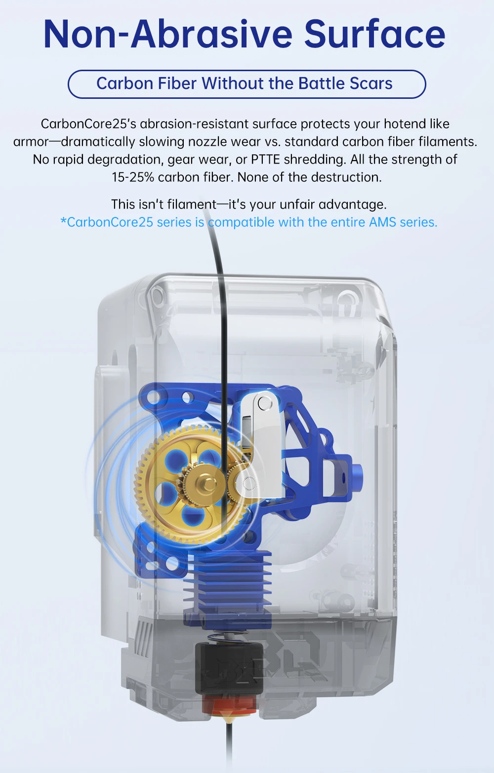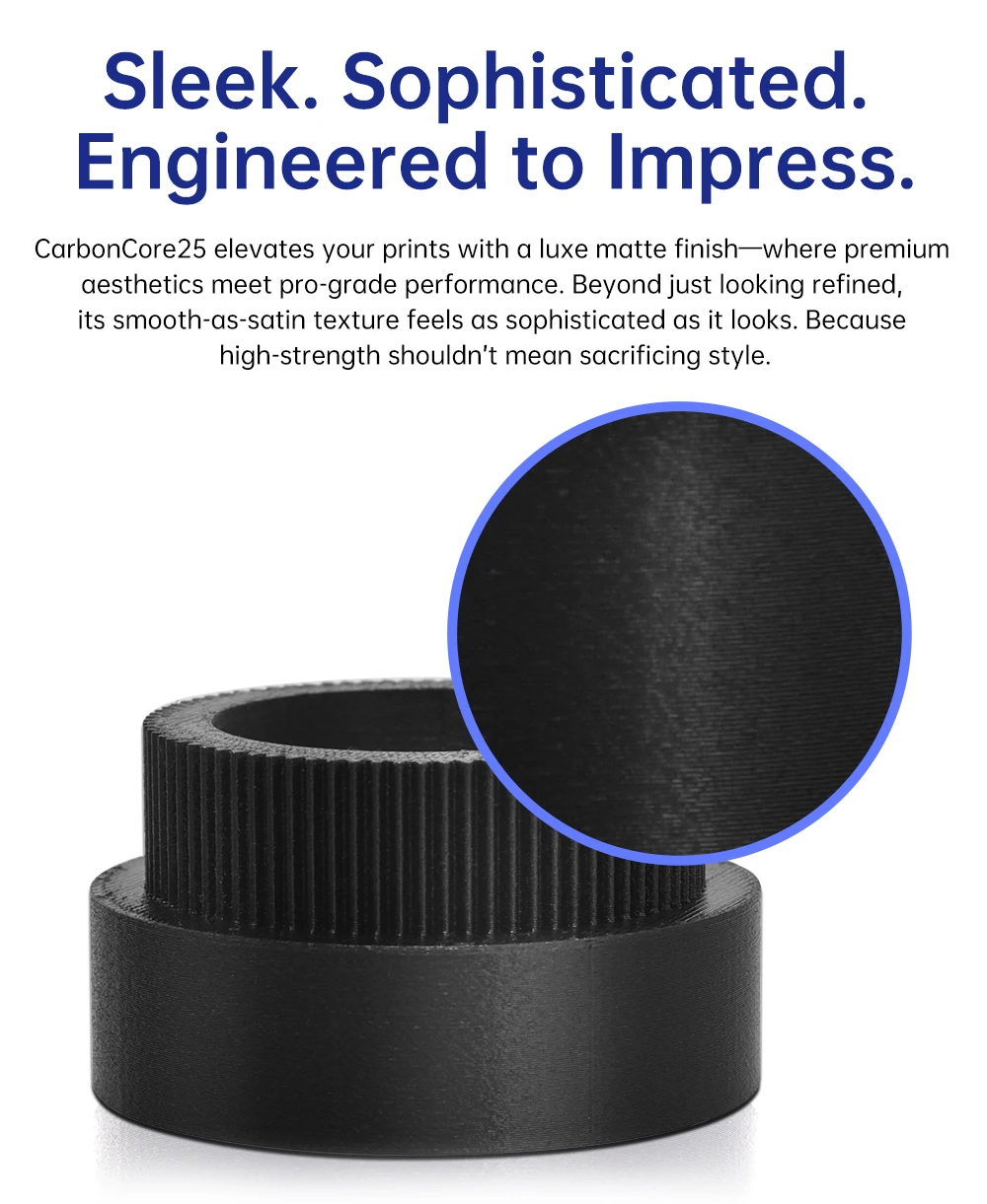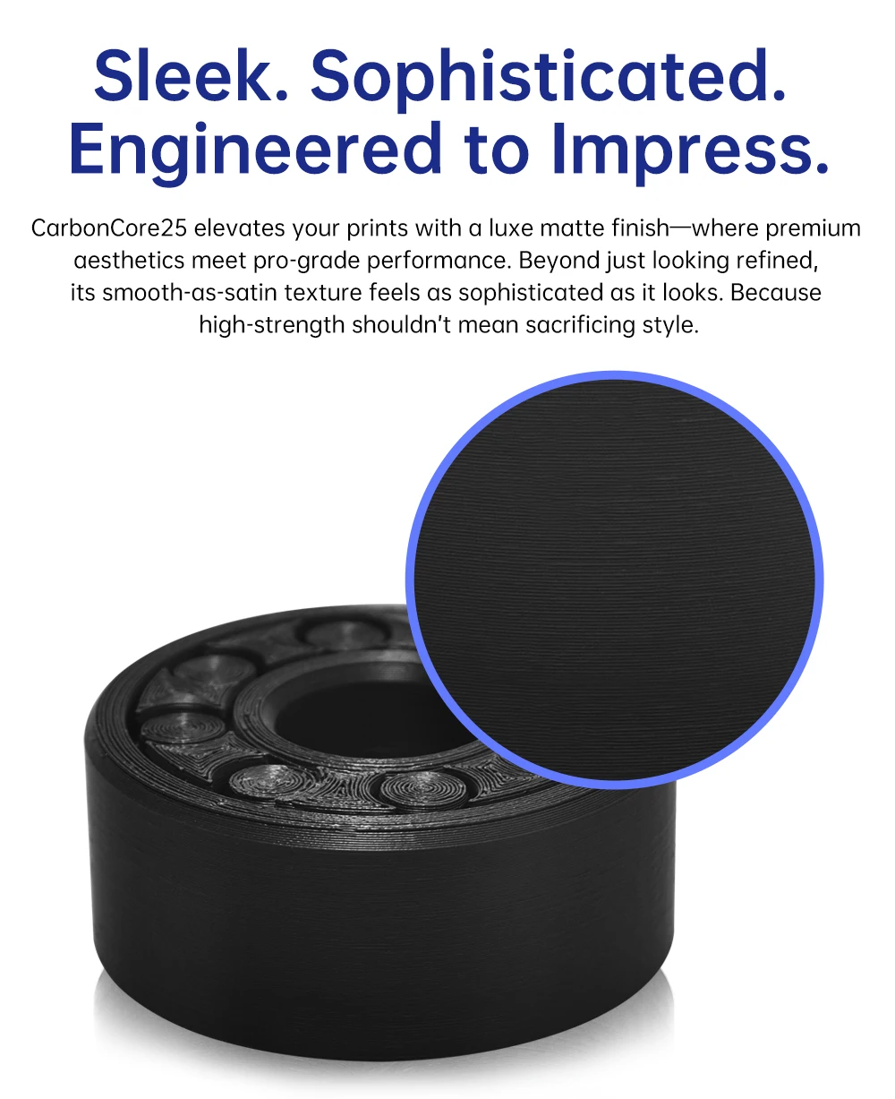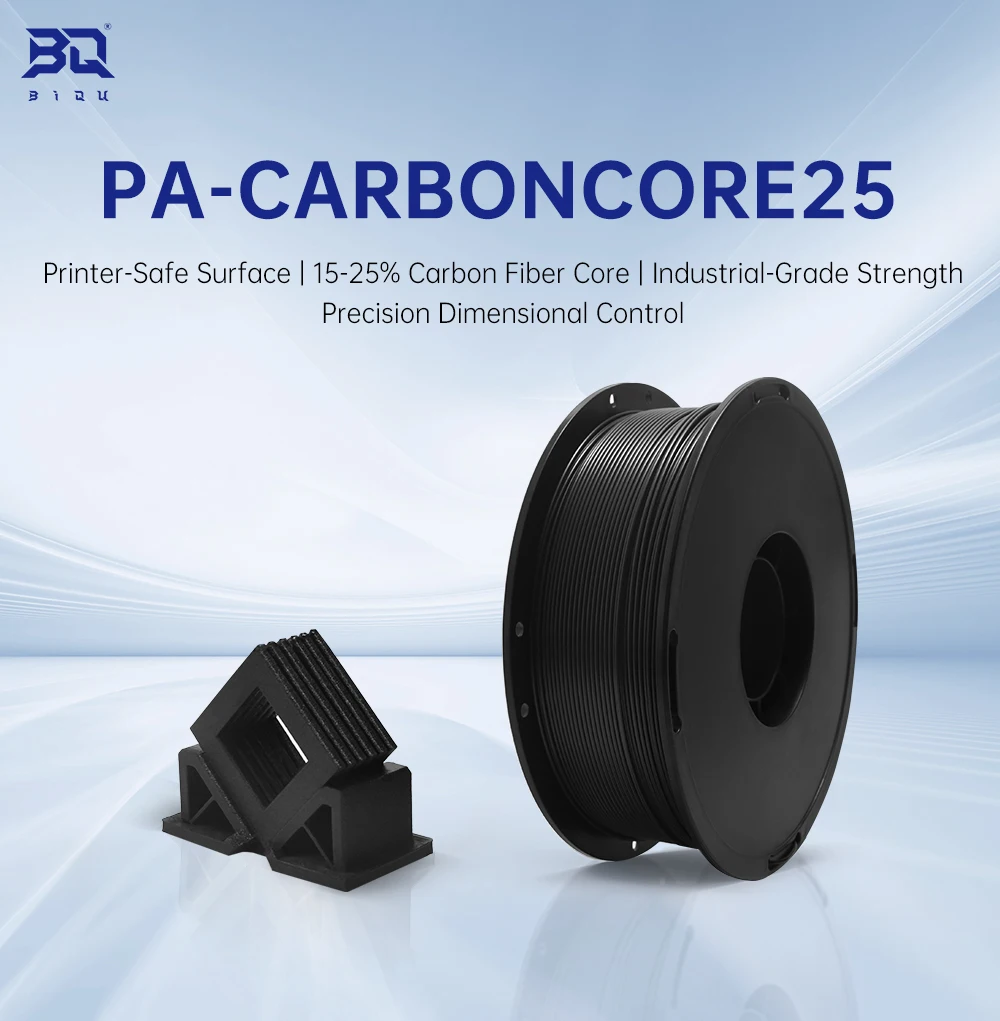 PA-CARBONCORE25Superficie segura para impresoraNúcleo de fibra de carbono 15-25%|Control dimensional de precisión de resistencia de grado industrialNombre del productoPA-CarbonCore25Tipo de filamentoPA-CF