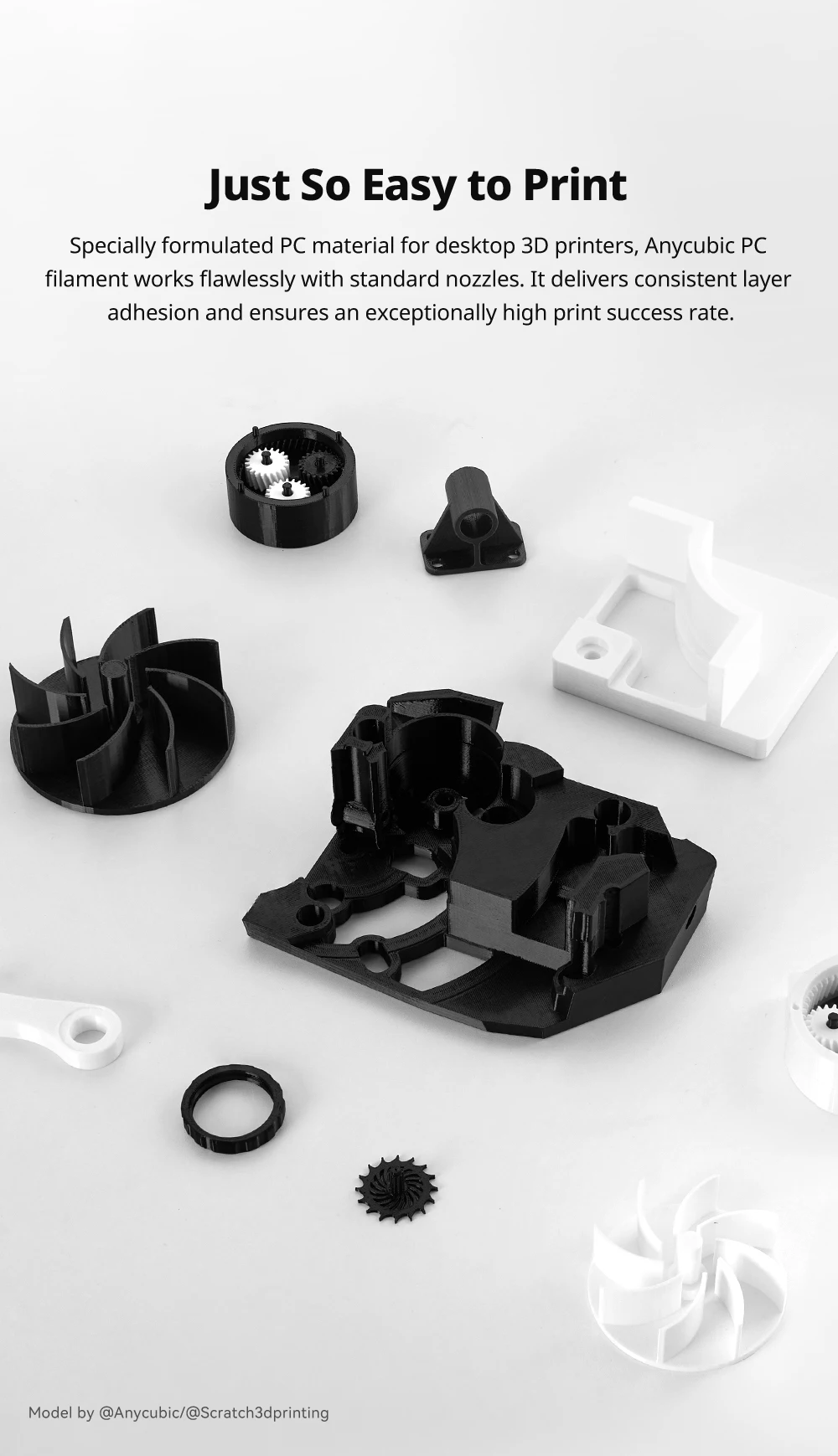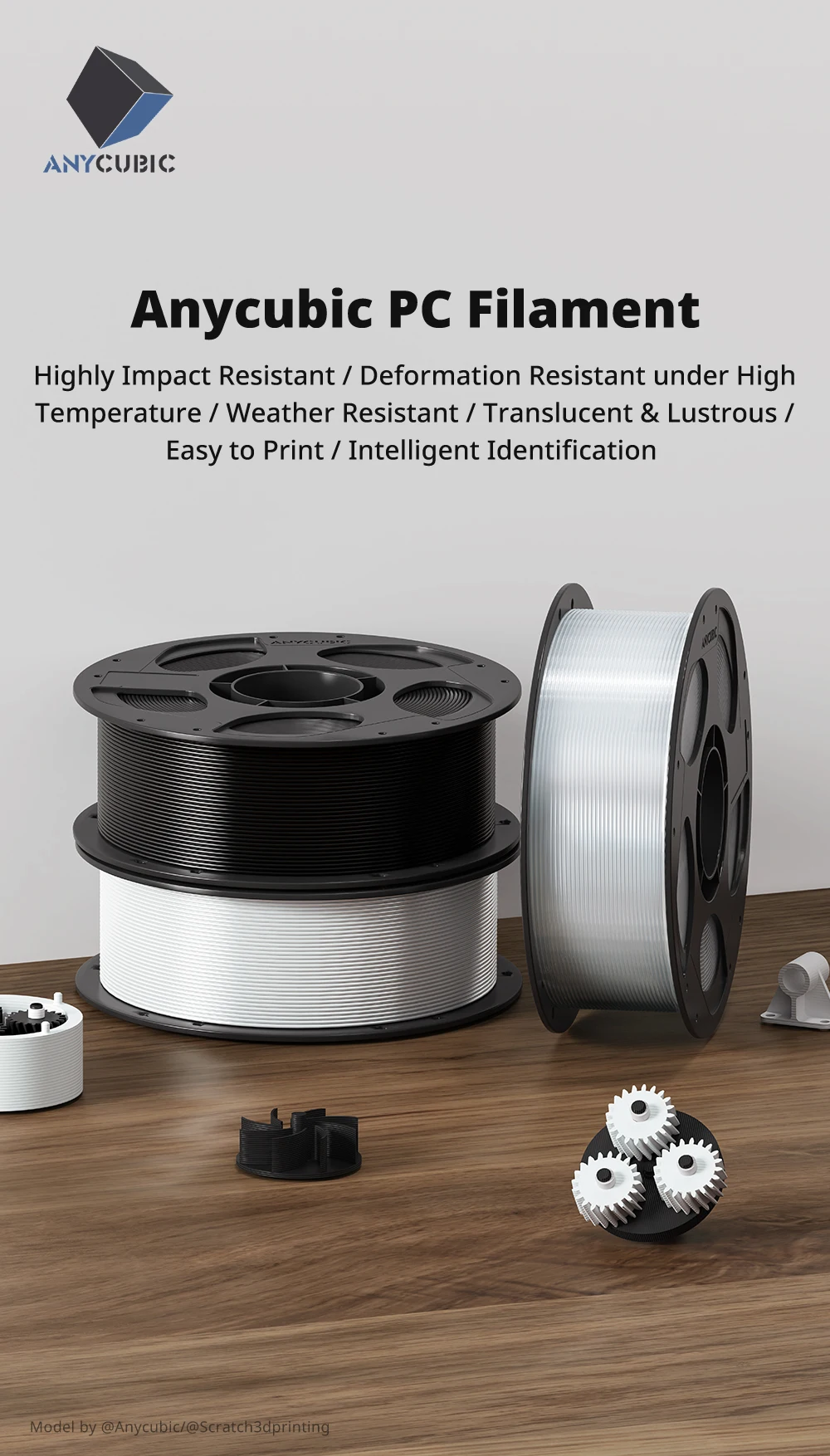 Material de PC especialmente formulado para impresoras 3D de escritorio. El filamento de PC Anycubic funciona perfectamente con boquillas estándar.Ofrece una adhesión constante de la capa y garantiza una tasa de éxito de impresión excepcionalmente alta.