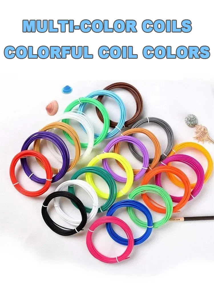 Aquí tiene 2 tipo filamentos para su elegir: PLA. La temperatura de trabajo del filamento del PLA es 180 ° ~ 230 °, elige por favor el filamento correcto para su pluma 3D.