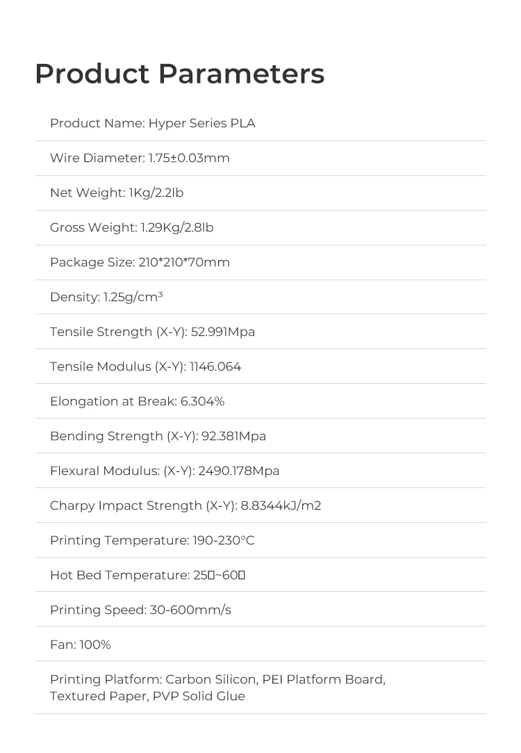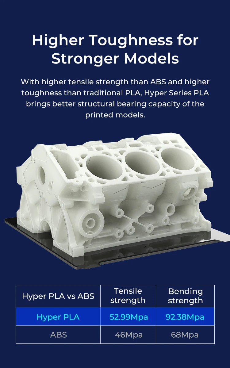 【Mayor dureza y resistencia superior】Con mayor resistencia a la tracción que el ABS y mayor tenacidad que el filamento de impresión 3D PLA/PLA +/PLA Plus/PLA Pro tradicional, Creality Hyper PLA Filament de 1,75 mm brinda una mejor capacidad de carga estructural a los modelos impresos.