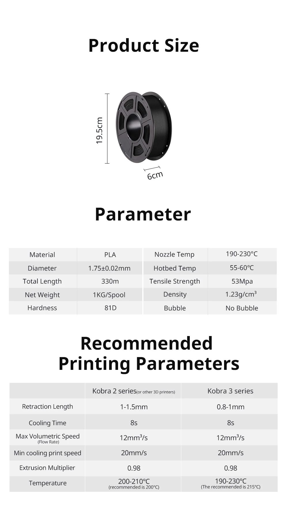 Comprar Filamento de plástico ANYCUBIC 20/10KG PLA 1,75mm para impresora 3D FDM 1 kg/rollo Material de impresión 3D PLA de alta velocidad para Kobra 2 Pro Max