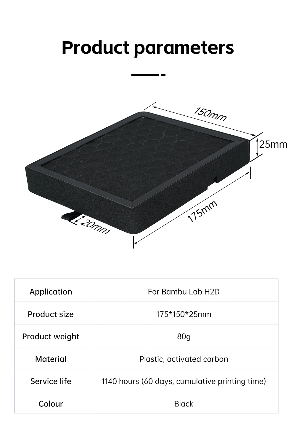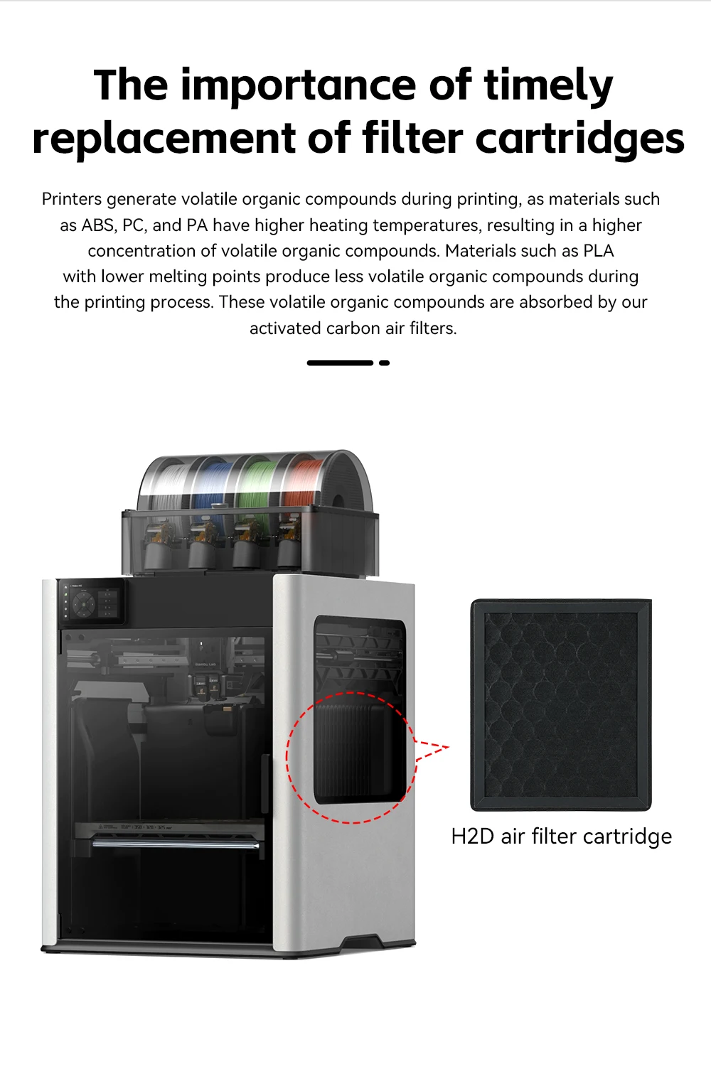 Filtro de aire H2D para laboratorio Bambu, elemento de carbón activado, filtro purificador de aire, piezas de repuesto para impresora 3D para filtro de carbón H2D