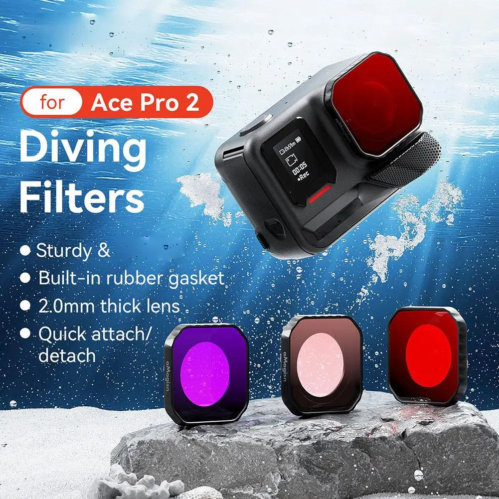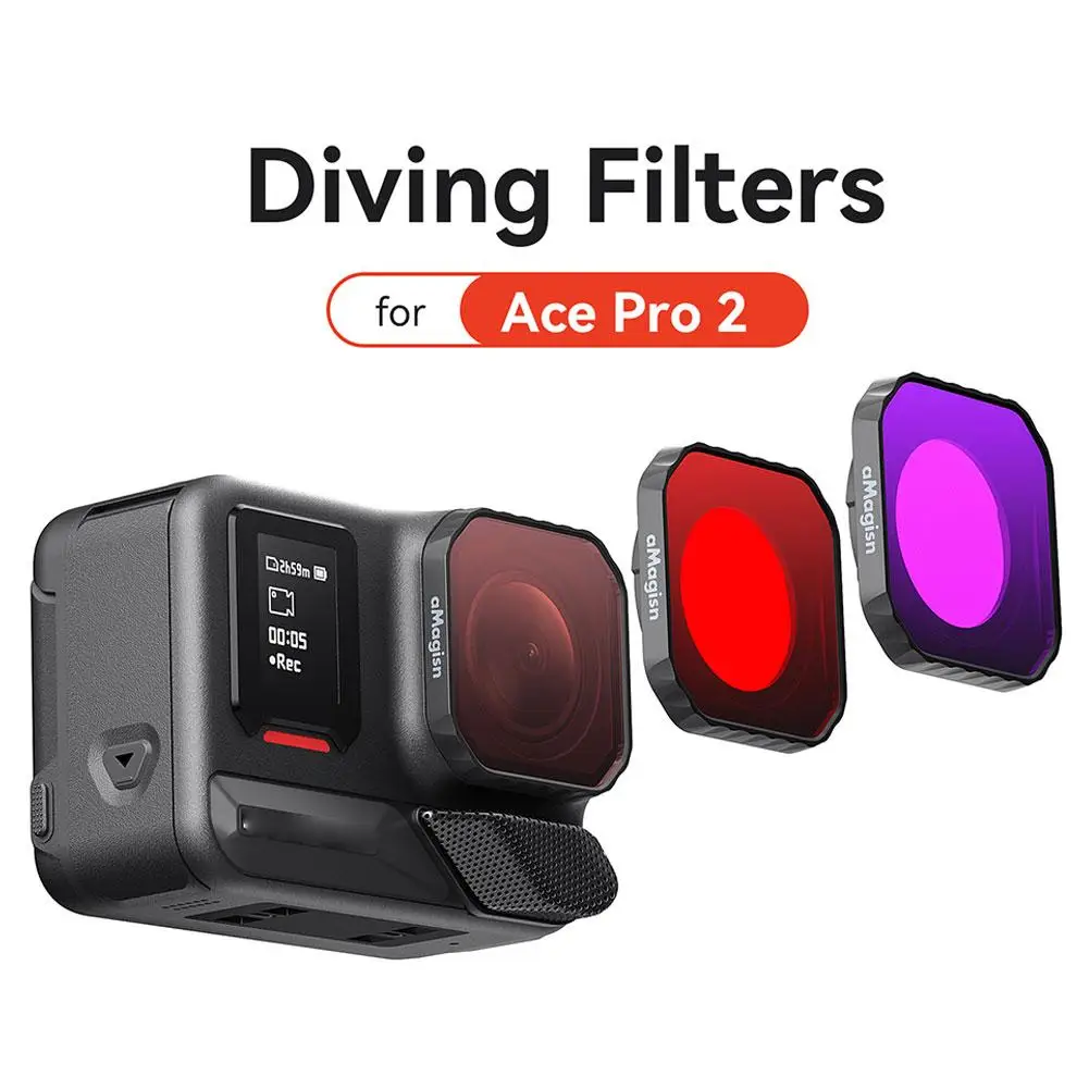 Comprar Filtro de buceo para Insta 360 Ace Pro 2, impermeable y resistente a la niebla, filtro rojo/rojo/púrpura, accesorio de protección de lente de cámara