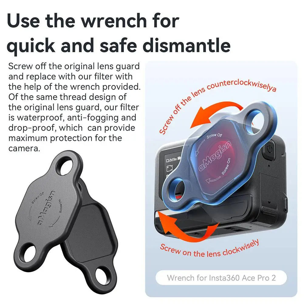 2.Equipado con una llave para una instalación segura: utilizando el mismo método de montaje que la lente original, use la llave incluida para quitar la lente protectora original, luego instale el filtro Amai, asegurando el máximo rendimiento a prueba de agua, niebla y caídas.