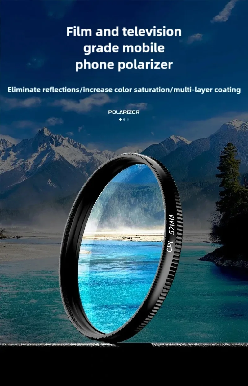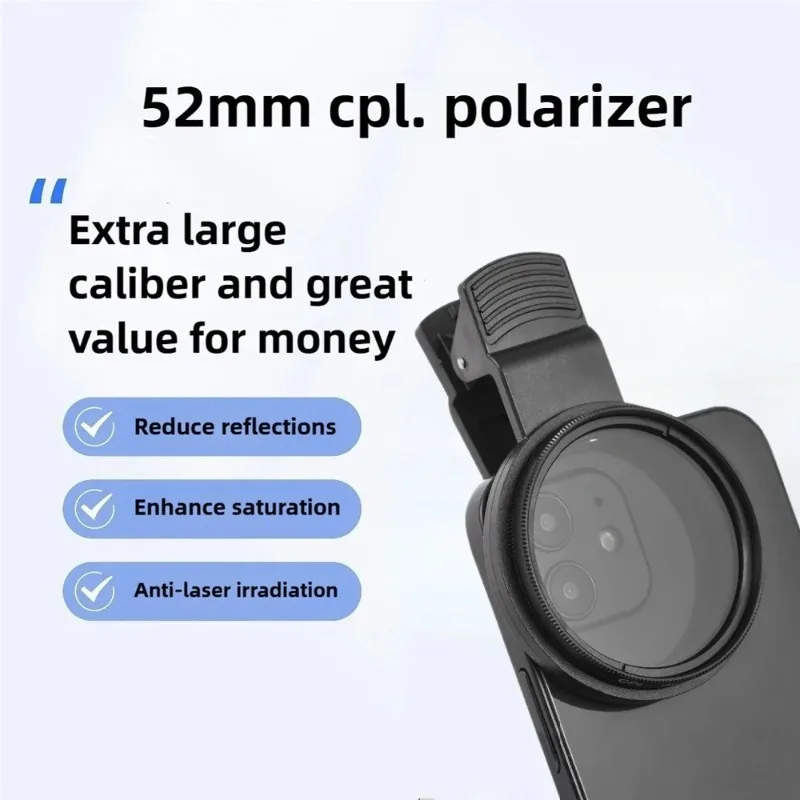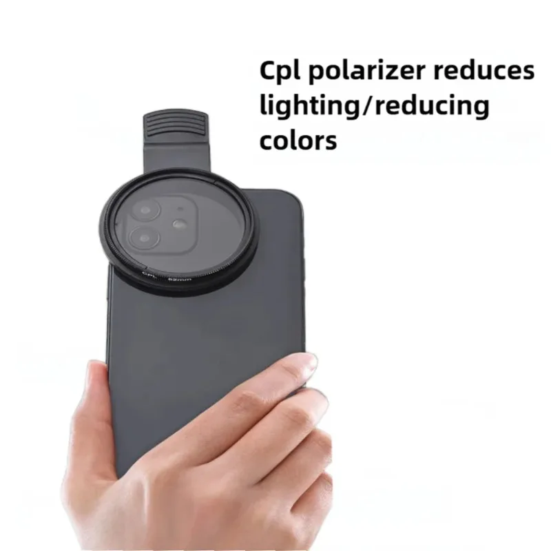 Filtro CPL de 52MM, lente Circular de cámara de teléfono, filtro Polarizador Universal, Clip de lente sin reflejos para IPhone 16 Pro Samsung Google