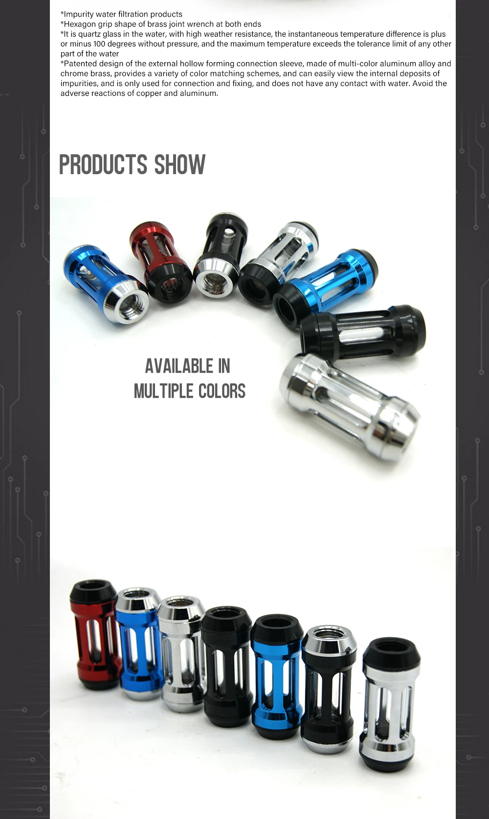 Diseño patentado de los conjuntos de conexión de modelado hueco exterior, el uso de aleación de aluminio multicolor y material de latón cromado para proporcionar una variedad de colores con el programa, Y puede ver fácilmente la deposición interna de impurezas, y solo para la conexión de fijación, y el agua no produce ningún contacto, Para evitar reacciones adversas de cobre y aluminio.