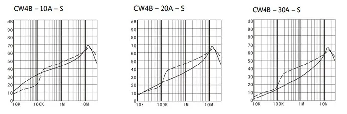 Por la norma CISPR 17/50ΩSistema.Modo común; ----- modo diferencial]